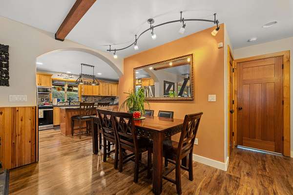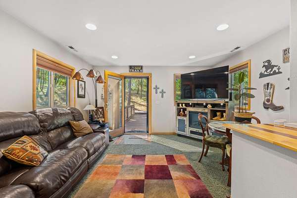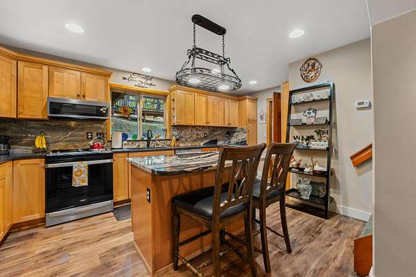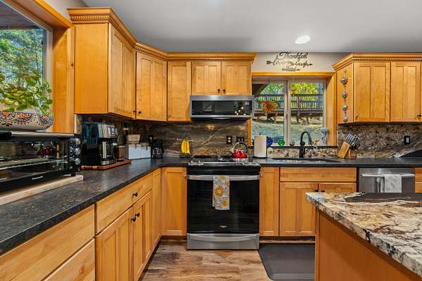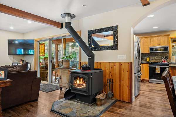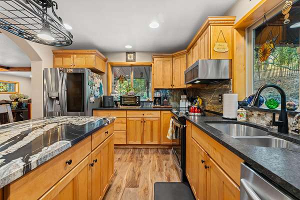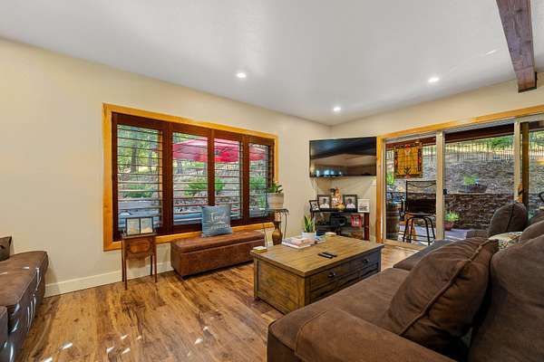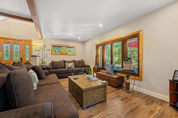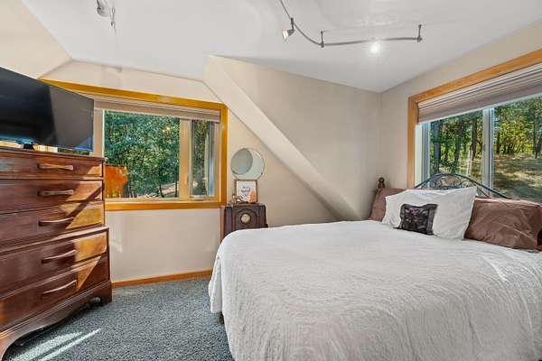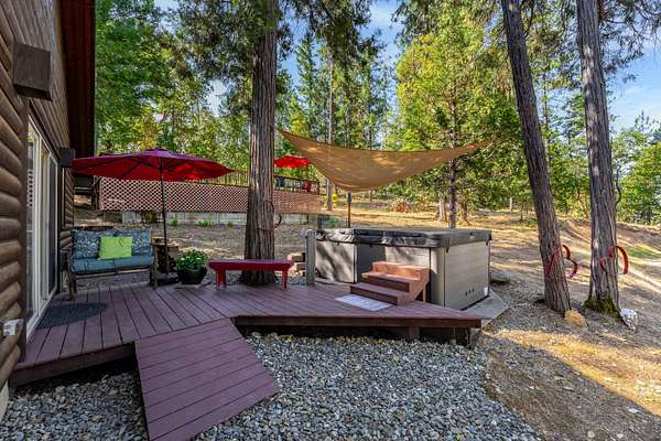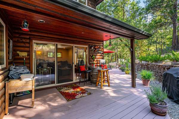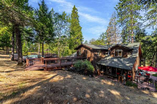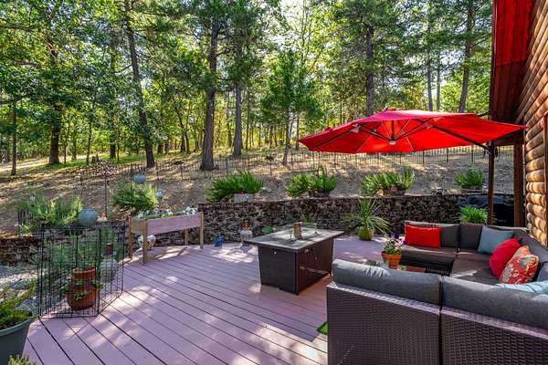 Nestled in the highly desirable Merlin/Hugo area, this beautifully updated 2-bedroom, 2.5-bath home offers the perfect blend of rustic charm and modern comfort. With cozy mountain vibes throughout, you'll love the warm, inviting feel from the moment you step inside. The spacious open-concept kitchen is ideal for entertaining, featuring plenty of room to gather with friends and family. Step outside to enjoy the peace and privacy of over 5 acres, complete with a seasonal pond and a large above-ground pool surrounded by a stunning custom deck, perfect for summer relaxation. Need space for hobbies or guests? The impressive 3-bay shop includes 1,440 sqft of living quarters above, offering endless possibilities. There are also multiple outbuildings for storage, plus ample RV parking. The current owners have poured love into the land, investing time and care into landscape maintenance and tree preservation, creating a park-like setting that feels like a retreat. Schedule your showing today.