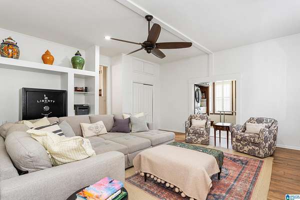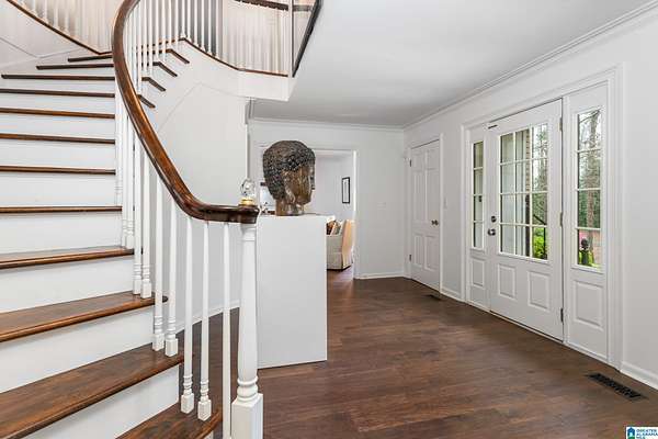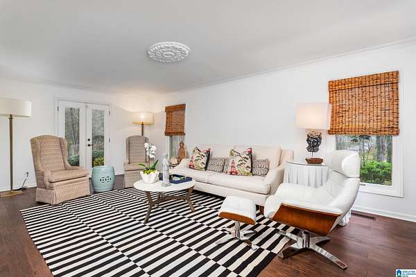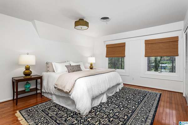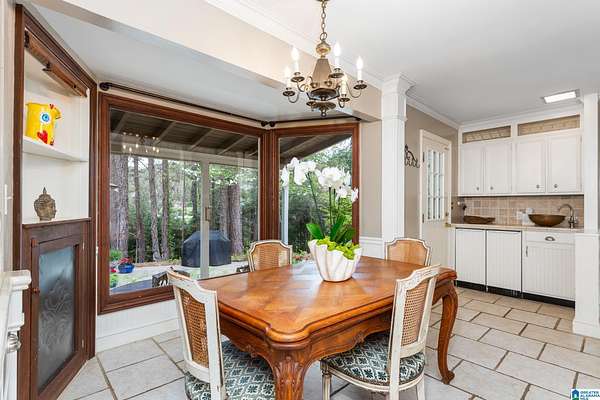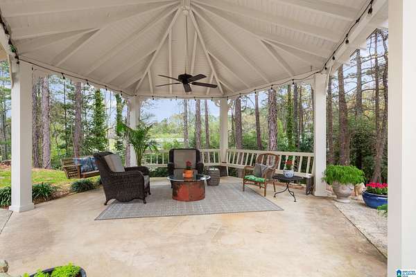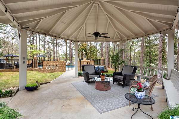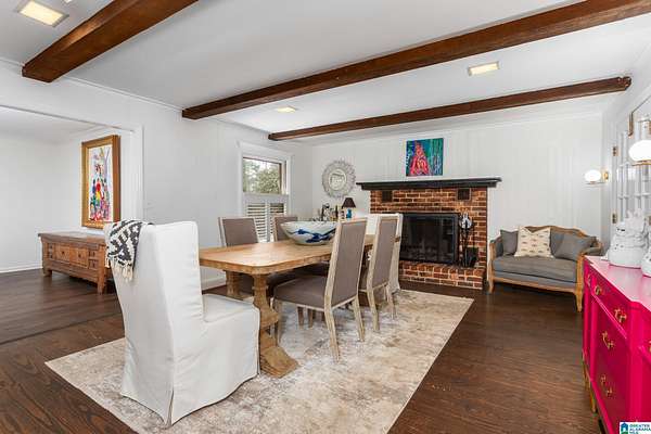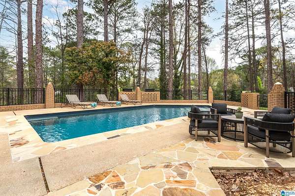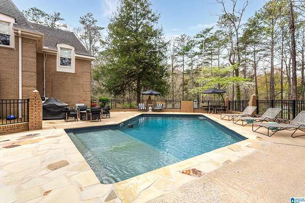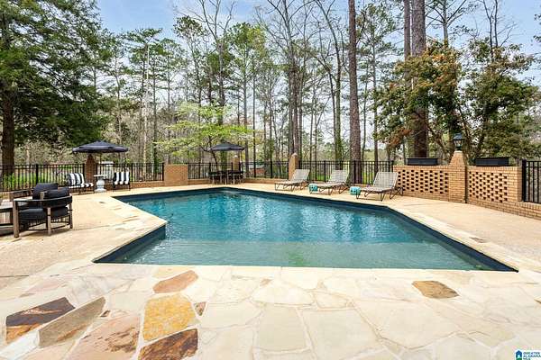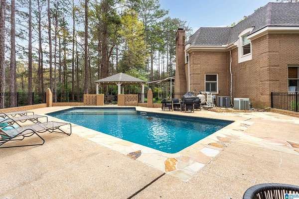 Welcome to this stunning brick estate set back and elevated on 3.4 wooded acres in Heflin! A grand entry with curved spiral staircase and gorgeous hardwood floors sets the tone for the elegance found throughout. Multiple living areas offer flexibility and flow, each thoughtfully designed with beautiful built-ins and cozy fireplaces. The dining room impresses with exposed beam ceilings and a brick fireplace, while a sunlit breakfast area with wraparound windows frames the backyard oasis. The kitchen features white cabinetry, tile backsplash, and a double oven. A shared bath offers double sinks and generously sized bedrooms include walk-in closets and plenty of room to spread out. The spacious master suite boasts a tray ceiling, hardwood floors, and a private bath with separate vanities and a walk-in shower. Outside, the covered gazebo overlooks a sparkling in-ground saltwater pool. All of this less than 20 minutes from the Oxford Exchange. This one is truly special!