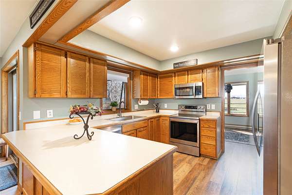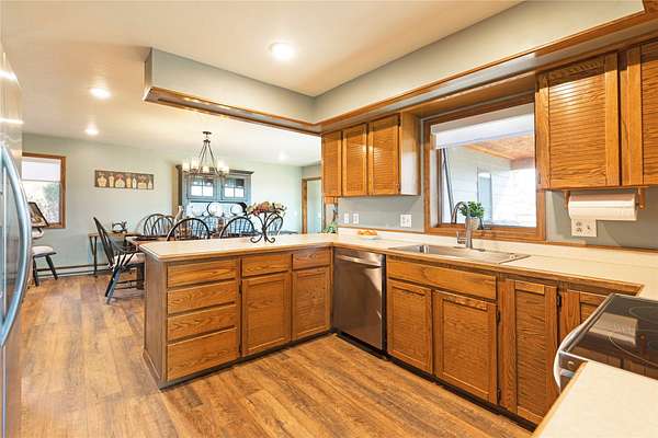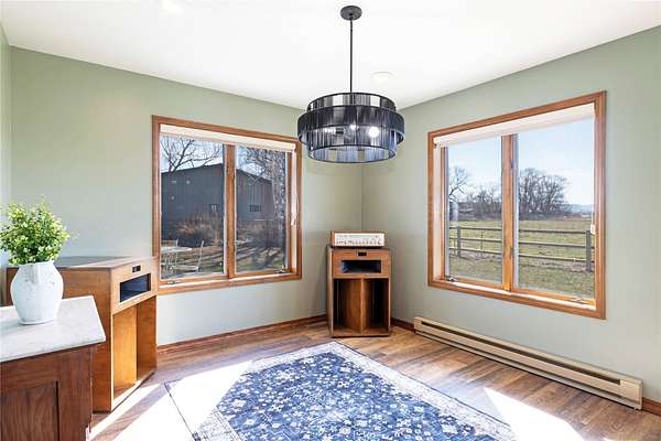 THIS IS THE PERFECT RANCHETTE AND IT HAS YEAR- ROUND CREEK OUT YOUR FRONT DOOR! Coal Pit Creek meanders through the property - perfect spot to relax! This home brings the dream of a quiet country setting with a year-round creek to reality. Super Good Cents home with tasteful new upgrades including exterior and interior paint, flooring, recessed lighting, lighting fixtures, ceiling fans, blinds and appliances. Upgraded bathrooms, too. New roof in 2008. You'll enjoy easy one-level living in this spacious 2023 square foot home with 3 bedrooms and 2 1/2 baths. The mountain views are breathtaking. This quality-built home with attached double garage has the perfect rural backdrop - yet is just minutes from town. Located on a paved county road, the 5.44 acre parcel gives you privacy and plenty of elbow room. The home has been meticulously maintained, and you'll find it in move-in condition. Enjoy the view from the large covered patio. If you're looking for a shop - you'll love this one!! It's 30x60, with one side finished and heated and the other side made for RV parking. Additional storage is available in the 20x24 shed plus another 10x12 shed. All in all, it is the perfect spot to call home!