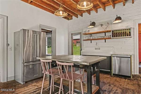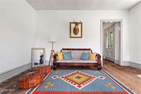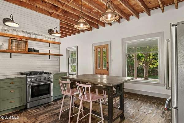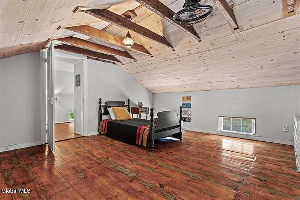 c.1870 Greek Revival Farmhouse set on 18+ verdant acres in the Catskill Mountains. The layers of the onion have been carefully pulled back to reveal the original elements of the home. Well-worn wood floors throughout give a wonderful patina and tell a story of the history of the home. Exposed beams are juxtaposed with kitchen amenities and bathrooms. The property features 5 beds & 2 full baths. One bedroom and bath are located on the primary level. The property also offers open-tillable fields, a garage barn, fenced garden and stream. Across the road is a 42+ acre parcel of NYC, 'FOREVER WILD', land. Minutes to the village of Stamford, NY and 1/2 hour to skiing destinations of Hunter & Windham Mountains. 2.5 hours from the GWB!