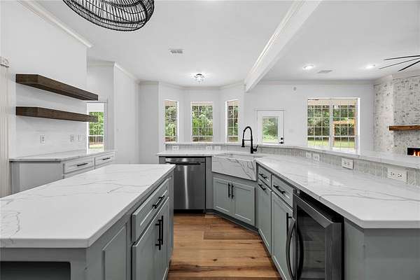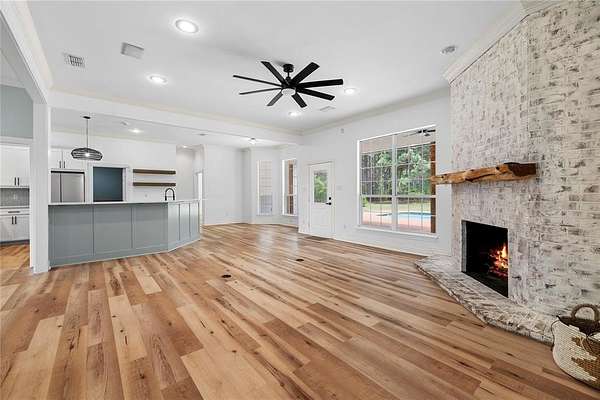 Set on 35 scenic acres in the heart of East Texas and located within the highly desirable Bullard ISD, this fully renovated property offers a rare blend of refined living and wide-open space. Every inch of the home has been thoughtfully updated to create a bright, welcoming atmosphere filled with natural light and durable, stylish luxury vinyl plank flooring throughout. The show stopping kitchen has been completely redesigned for both form and function, featuring a premium ILVE range, Whirlpool Gold appliances, and carefully selected finishes that make it a true centerpiece of the home. A new second living area expands the layout, providing a versatile space for relaxing or hosting, along with a private office nook perfectly suited for working from home. Step outside and enjoy a property designed for both recreation and tranquility. The resort-style pool with pergola creates a private retreat, while the sport court is ideal for basketball or pickleball. A dedicated garden area invites you to cultivate your own outdoor oasis. Additional upgrades include a new oversized three-car garage, whole-home generator, improved barn for storage or livestock, and a storm shelter for added security. Trails have been made through the woods for walking or ATV-UTV use. The existing wildlife agricultural exemption adds long-term value and sustainability. Despite its peaceful, rural setting, this exceptional estate is conveniently located less than 10 minutes from Bullard city limits. Whether you envision bringing livestock, enjoying the abundant wildlife, or simply embracing the space and privacy, this property delivers it all. This is not just a residence—it’s a thoughtfully upgraded lifestyle property offering comfort, versatility, and the freedom of East Texas living at its finest.