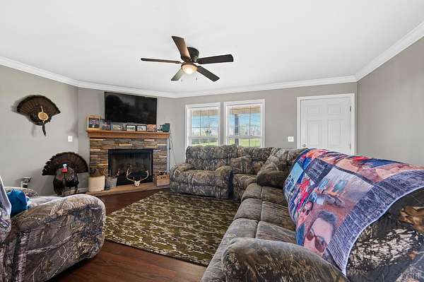 Est $3,526/moBeautiful 3 bedroom/2 bath home situated on 27.12 acres. Full walk out basement with lots of room for extra space. Beautiful country living including a pond, 2 outbuildings for workshop, garage or storage. Large master with full bath. Open floor plan in main living area. Kitchen boasts lots of cabinets and counter space for preparing meals for your family or guests. Large back deck and rocking chair front porch for enjoying your summer days. Fenced area for horses, cows or goats. Don't let this one get away!