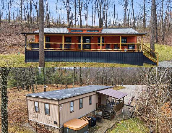 Escape to your own private retreat on 5 scenic acres featuring two beautifully designed cabins that have previously been utilized as short-term rentals. The primary cabin offers 3 bedrooms and 2 bathrooms, ideal for hosting larger groups, while the second cabin features a cozy 1-bedroom open-concept layout perfect for peaceful getaways. Both cabins include private hot tubs, allowing guests to relax and take in the quiet natural surroundings. The property is serviced by county water and is located just 1 mile from Vinton Furnace public hunting, offering convenient access to public hunting and outdoor recreation. With privacy, charm, and multiple possibilities for use, this property presents a rare opportunity to own a versatile cabin retreat.