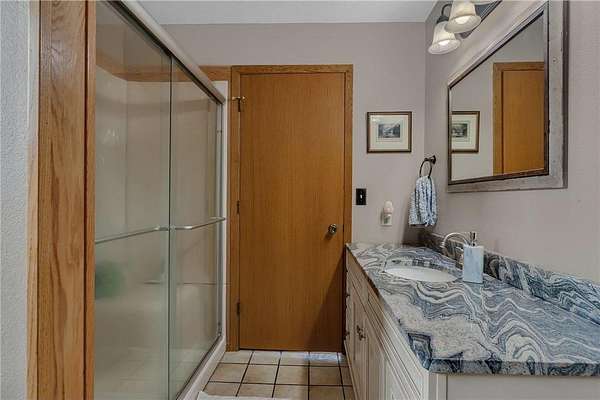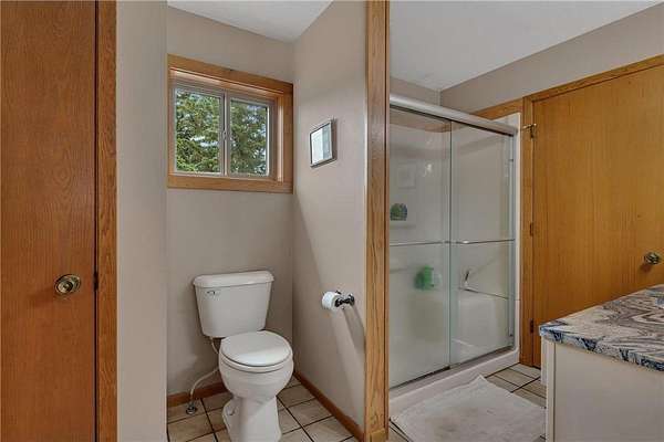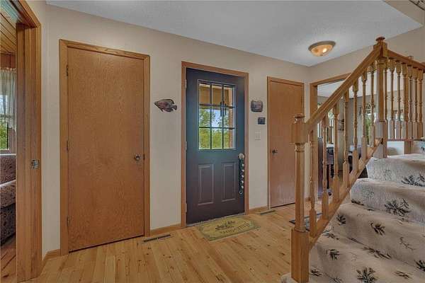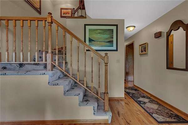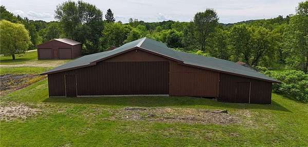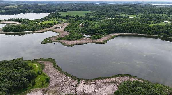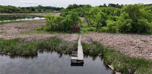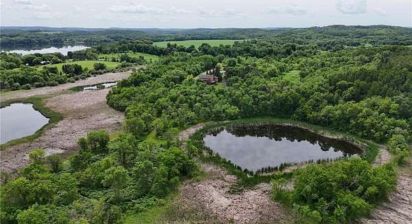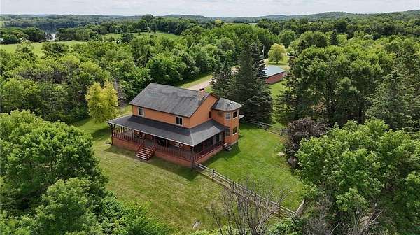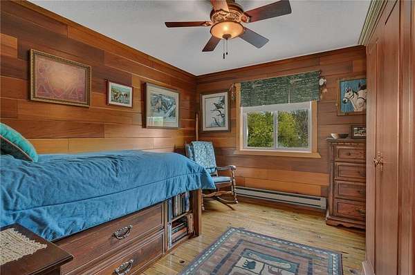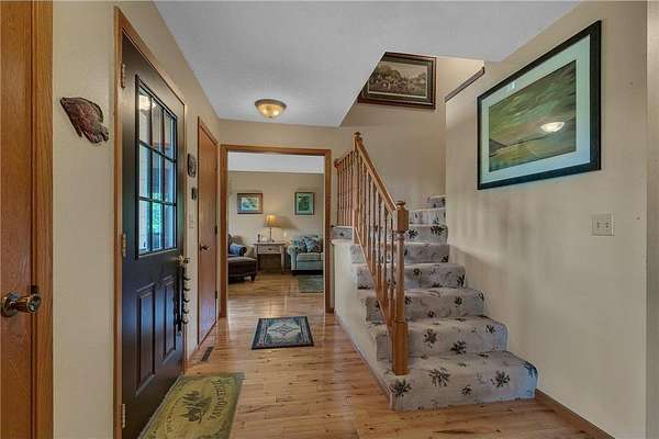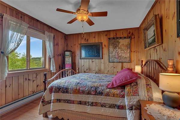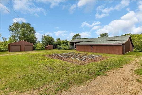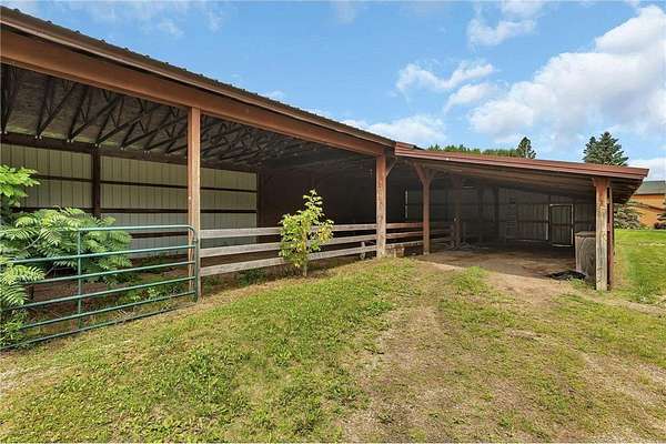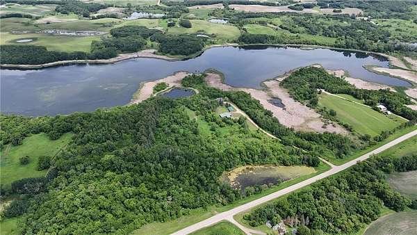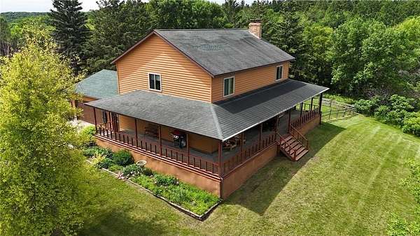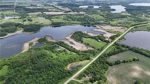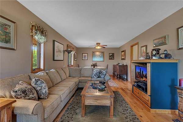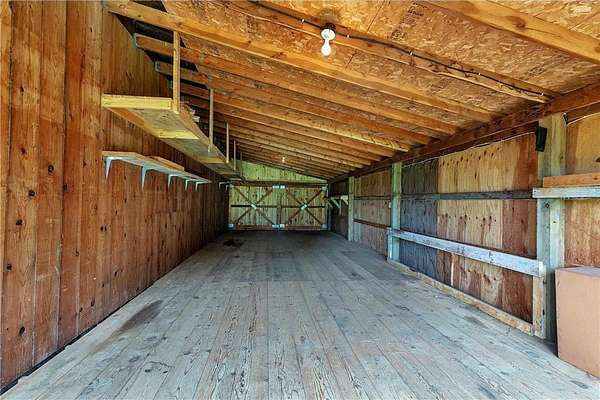 The home's open concept kitchen is equipped with elegant granite countertops and a convenient center island, making it both stylish and practical. A wood stove adds warmth and charm, creating a cozy ambiance on cold winter nights. The primary bedroom is impressively spacious, and each of the four same-level bedrooms includes a large walk-in closet for ample storage. This property features a two-stall attached garage and a two-stall detached garage, providing plenty of space for vehicles and outdoor equipment. Additional amenities include a 48x22 heated shop with a concrete floor, a storage shed, a barn with multiple storage areas, and an outdoor wood boiler to ensure comfort throughout the year. Jolly Ann Lake is renowned for excellent boating and fishing, with a maximum depth of 89 feet. Recent upgrades include a new mound system installed in 2024 and new metal roofs on both the shop and detached garage in 2023. For those who require connectivity, fiber optic internet is available. This peaceful and meticulously maintained lakefront home, complete with acreage and outbuildings, is truly a rare find. Opportunities like this do not come often. Schedule your showing today to experience the unparalleled beauty and tranquility of Jolly Ann Lake living!