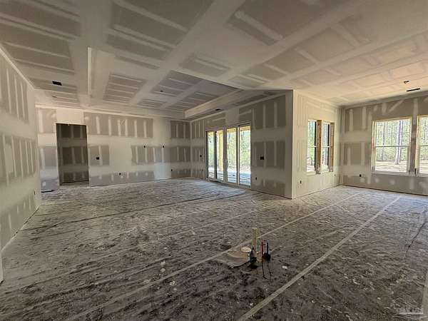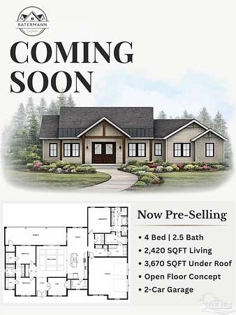 Under construction in the picturesque NatureWalk at Pond Creek, this custom-built 4-bedroom, 2.5-bath traditional Craftsman offers 2,420 square feet of refined living space and 3,670 square feet total under roof, privately situated on a 2.7-acre homesite surrounded by mature pines and natural beauty. NatureWalk is known for its estate-sized parcels, wooded surroundings, and quiet country atmosphere - offering a rare blend of privacy and community just minutes from town conveniences. The setting provides space to breathe, room to grow, and a backdrop that feels peaceful year-round. Inside, 10-foot ceilings throughout, 8-foot interior doors, and a coffered ceiling in the great room create an open yet substantial feel. The layout is thoughtfully designed for both everyday living and entertaining. At the center of the home, the chef's kitchen features a gas range, generous island workspace, and a full walk-in pantry with custom shelving - offering both function and storage rarely found in typical builds. The spacious Jack & Jill bath serves the secondary bedrooms, each offering its own walk-in closet - a highly functional and desirable detail. The primary suite is designed with comfort and longevity in mind, highlighted by a zero-entry shower and carefully selected finishes. The exterior blends Hardie board siding with classic brick accents for timeless Southern curb appeal. Spray foam insulation and generator-ready wiring add efficiency, durability, and long-term peace of mind. Estimated completion: Summer 2026. Showings available by appointment