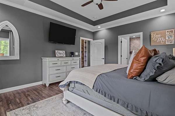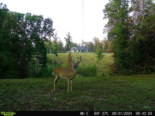 This stunning custom home is ideally situated as the centerpiece of 103.99 acres. Inside, you will find a spacious 3,038 sq. ft. layout featuring 3 BD and 3.5 BA. Notably, the upper level includes two large rooms--one currently used as an additional bedroom and the other as a playroom--which can also be used as an additional bedroom. The home boasts custom cabinets, granite countertops, and a walk-in pantry. The living room is enhanced by a vaulted ceiling and a gas fireplace, while tile and luxury vinyl plank flooring are featured throughout. There's also a two-car attached garage and spray foam insulation for energy efficiency. With over 1,900 sq. ft. of covered porches, the front porch offers picturesque views of the front pasture, while the back porch is perfectly designed for entertaining guests. The privacy this property provides is unparalleled, and the house is only five years old! The land is comprised of approximately 90 acres of timber, with the remainder consisting of open fields. Numerous trails throughout the property allow easy access to all areas. The property has been well-managed for wildlife, boasting an abundance of deer and turkey, making it an excellent hunting oasis. Several food plots and deer stands are situated on the property, and the rolling timbered ridges descend into a large flat area featuring open food plots and a year-round spring creek. There is ample room to add a barn or shop, making this property ideal for agricultural use. It offers limitless potential for personalization. Conveniently located just 19 miles from Kentucky Lake, the property is also 1 hour and 15 minutes West of Nashville, 20 minutes West of Dickson, 1 hour South of Clarksville, and 1.5 hours East of Jackson. The property comes with well water, gas, electricity, and fiber internet. In Greenbelt Program and has a VA assumable loan w/ low interest rate. (Do not have to be veteran to assume loan.) Video of Property linked below. Seller Credit Offered
