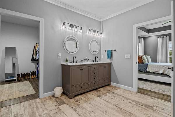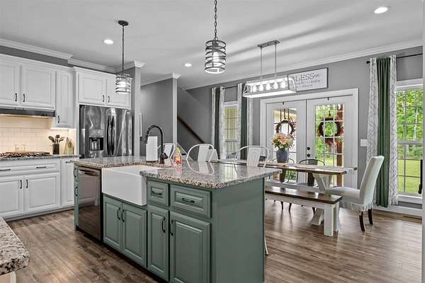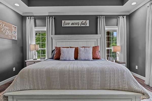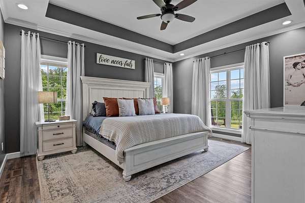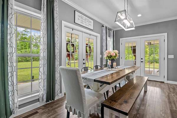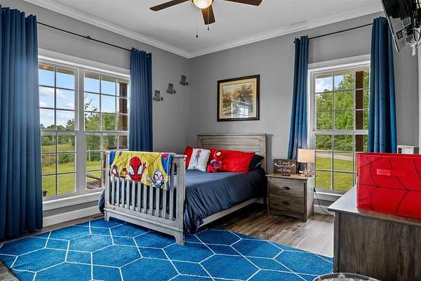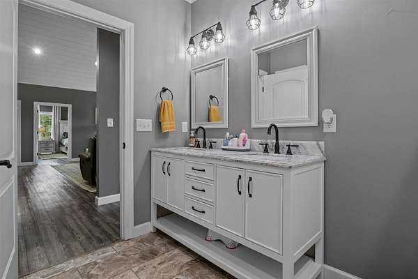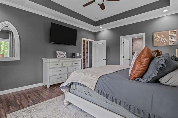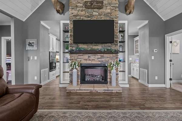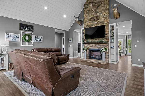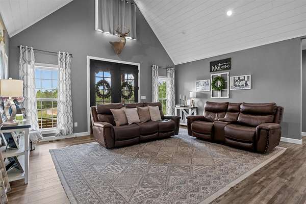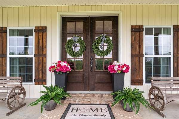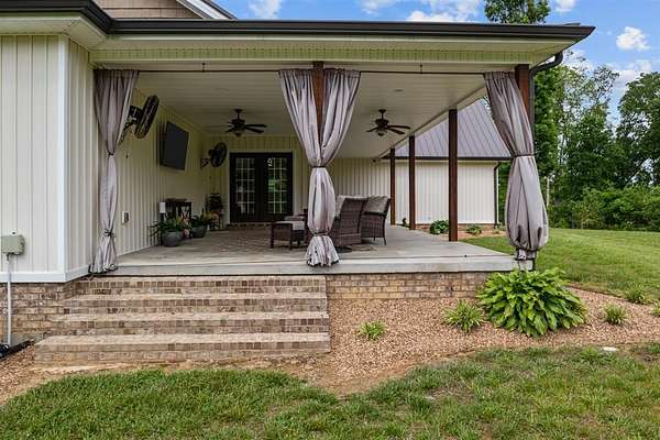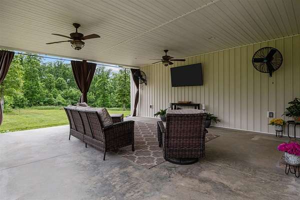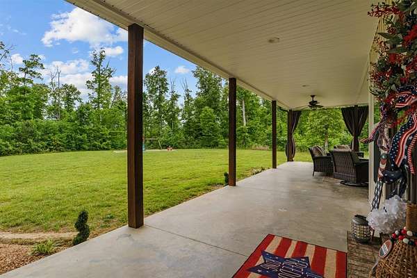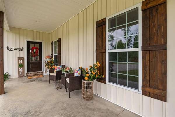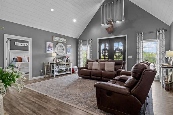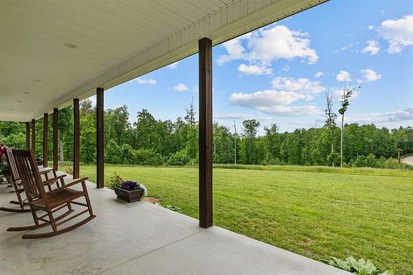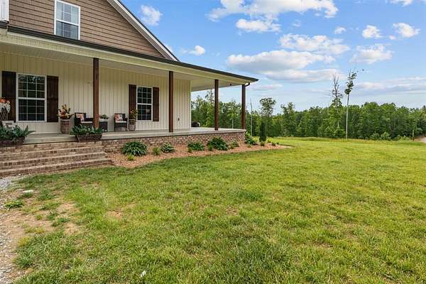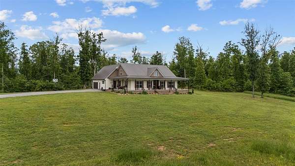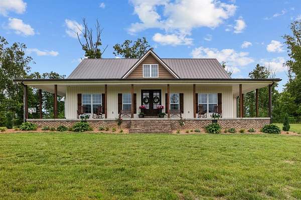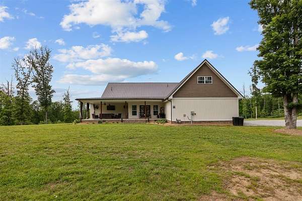 This stunning custom home is ideally situated as the centerpiece of 103.99 acres and is priced to sell. Inside, you will find a spacious 3,038 sq. ft. layout featuring 3 BD and 3.5 BA. Notably, the upper level includes two large rooms--one currently used as an additional bedroom which includes a full bath and the other as a playroom--with an office and closet area in between the two. The home boasts custom cabinets, granite countertops, and a walk-in pantry. The living room is enhanced by a vaulted ceiling and a gas fireplace, while tile and luxury vinyl plank flooring are featured throughout. There's also a two-car attached garage and spray foam insulation for energy efficiency. With over 1,900 sq. ft. of covered porches, the front porch offers picturesque views of the front pasture, while the back porch is perfectly designed for entertaining guests. The privacy this property provides is unparalleled, and the house is only five years old! The land is comprised of approximately 90 acres of timber, with the remainder consisting of open fields. Numerous trails throughout the property allow easy access to all areas. The property has been well-managed for wildlife, boasting an abundance of deer and turkey, making it an excellent hunting oasis. Several food plots and deer stands are situated on the property, and the rolling timbered ridges descend into a large flat area featuring open food plots and a year-round spring creek. There is ample room to add a barn or shop, making this property ideal for agricultural use. It offers limitless potential for personalization. Conveniently located just 19 miles from Kentucky Lake, the property is also 1 hour and 15 minutes West of Nashville, 20 minutes West of Dickson, 1 hour South of Clarksville, and 1.5 hours East of Jackson. The property comes with well water, gas, electricity, and fiber internet. Property is enrolled in Greenbelt Program and has a VA assumable loan w/ low interest rate. Video of Property linked below.