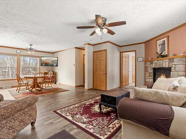 This home sits on 2.8 acres, with a gradual slope down to the lakefront. Home features a beautiful master suite with a remodeled full bathroom and walk in closet, gas fireplace in living room, main floor living, and such much more!