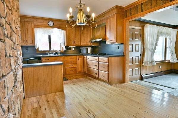 Positioned on "The Ridge" in Fowler Township, this charming farmhouse overlooks the countryside while remaining just minutes from Route 11 and everyday amenities. Set on 4.001 acres, this beautifully updated homestead offers the perfect blend of peaceful rural living with convenient access to town, shopping, and highways. The move-in-ready farmhouse is surrounded by colorful landscaping and features inviting outdoor living spaces, including a rear swimming pool and outdoor dining area perfect for relaxing or entertaining. Inside, the home is filled with natural light and character. Large windows, warm woodwork, and striking stone accents define the living spaces, highlighted by an impressive fireplace. The renovated kitchen features KraftMaid cabinetry, hickory flooring, and a stone accent wall. The first-floor bedroom includes a new ceiling (2021) and new carpeting, while updated carpeting extends throughout much of the home. The second-floor bonus room features a whole-house fan for added comfort. A full basement with laundry provides excellent storage and workspace. Major improvements include new plumbing (2022), monitored security system (2022), complete septic replacement (2024), and iron and carbon filtration upgrades (2024) added to the existing water softener and purification system. Roof on house and garage replaced in 2011. A gas well provides free annual gas consumption, keeping utility costs low. Outbuildings include a large barn with lower garage area and spacious second-floor loft ideal for storage, hobbies, or creative use. A detached two-car garage and backyard storage shed add flexibility. With acreage, updates, barn, pool, and beautifully maintained farmhouse, this rare Fowler Township property offers space, comfort, and endless possibilities. Call today for your private showing!