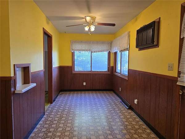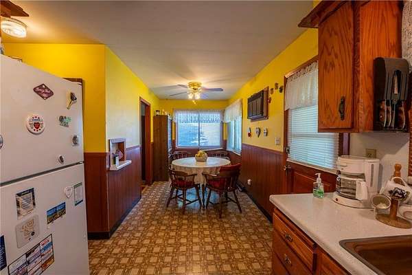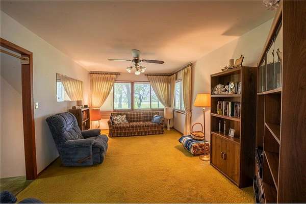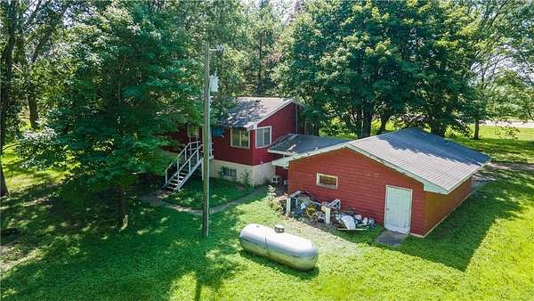 Discover this hidden gem on 3.0 acres with 690 feet of lakeshore on St. James Lake. This 4-bedroom, 2-bathroom split-level home offers a versatile layout with both a living room and family room. The inviting eat-in kitchen features a newer gas stove, and all appliances, including the washer and dryer, will stay. Enjoy charming country views from the living room adjacent to the kitchen. There are 2 bedrooms and a full bath on the upper level. The lower level includes a family room, 2 additional bedrooms, and another bath. A 24x30 double-attached garage connects directly to the home, complete with a workshop at the back. Outside, you'll find an attractive landscape with apple and various fruit trees, plus mature shade trees for relaxation. This property needs some TLC and is sold as-is. Nestled just outside of city limits, on a tar road, enjoy City (rural) water and stunning views--lake on one side and countryside on the other.