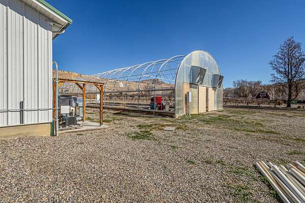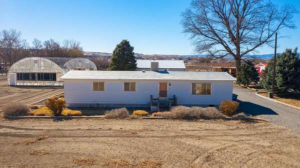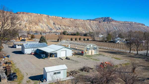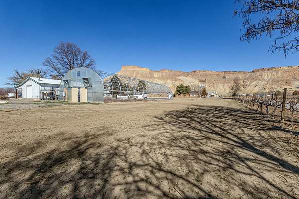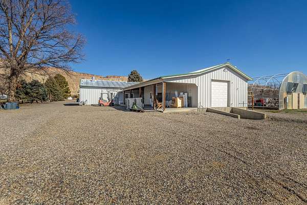 Incredible agri-business opportunity in Palisade. This 6.34 acre irrigated property includes approx 3 acres of mature plum trees, a 1,200 sq. ft. heated/cooled commercial kitchen, a 1,008 sq. ft. packing shed, and a 3,360 sq. ft. hoop greenhouse with electricity and water, and a 1970 mobile home (currently used for storage). The commercial kitchen features an office, half bath, walk-in cooler, concrete floors, all under a metal roof with durable metal siding. The packing shed includes a half bath, walk-in cooler, two roll-up doors, and a loading dock. Three-phase power was added in 2018. Surrounded by orchards, vineyards, and views of Mt. Garfield and the Grand Mesa. This property offers the infrastructure, location, and potential to launch your agricultural or farm-to-table venture.