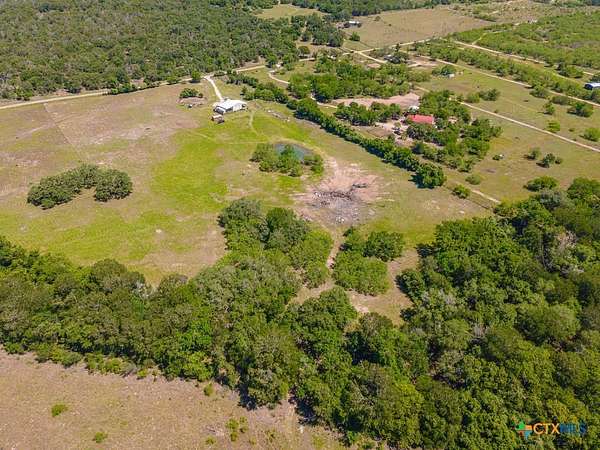 Discover 18.5 fully fenced acres offering privacy, versatility, and scenic charm between Luling and Kingsbury. This property features a stocked .25-acre pond with Channel Catfish and Hybrid Bluegill, as well as a seasonal wet-weather creek! A standout feature is the 2,800 sqft metal shop, including 1,200 sqft of enclosed space with drive-through 12' roll-up doors, high-bay lighting, and extensive electrical hookups: (3) 220V 50-amp and 20+ 110V outlets. Washer/dryer connections are also in place. Ideal for equipment storage, workshop use, or to convert into a Barndo! Water is abundant with a deep well producing approximately 35 gallons per minute. A supplemental pipe is installed to feed the pond during dry seasons. Conveniently located with easy access to local amenities, this property offers the perfect blend of functionality and tranquility. Great potential for a private retreat, working ranch, or recreational getaway.