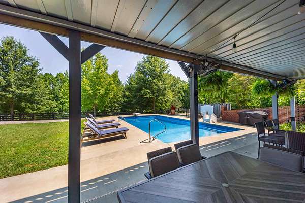 CUSTOM BUILT HOME ON 11.91+/- ACRES WITH COMMERCIAL KITCHEN. Here is an incredible opportunity to own a one-of-a-kind property in the peaceful Kentucky countryside. This unique mini farm is packed with features and room to grow. The beautiful custom-built home offers approximately 2,214+/- sq/ft of living space on the main floor, plus a finished basement. With 3 bedrooms and a bonus room in the basement currently used as a 4th bedroom, there's space for everyone. The home includes 3 full baths, 2 half baths, and stylish details throughout-think granite countertops, tray ceilings, hardwood and tile floors, deluxe trim and fixtures, and custom cabinetry. Need room for hobbies or extra functionality? This property doesn't disappoint. The attached 2-car garage keeps your vehicles out of the elements. Step outside to enjoy the heated inground pool-with concrete benches and deck jets perfect for sunny Kentucky days. The pool area connects to a walkout basement with an outdoor kitchen, great for backyard barbecues or just relaxing with family. One standout feature is the licensed commercial kitchen, complete with its own half bathroom, septic system, and laundry area. Already set up for a catering business, it could also work as a bakery, meat processing area, dog grooming shop, or even be converted into a second living space-perfect for a family compound. Need space for your animals or your gear? A large building with garage doors offers excellent storage, and it even has an RV roof-over shed on the side. In the back, you'll find a two-stall horse barn with a tack area and loft, along with a chicken coop. The whole property is fully fenced and cross-fenced into three sections, with livestock waterers and a riding trail around the perimeter. Located in close proximity to Liberty and not far from Lake Cumberland, this property combines country living with entrepreneurial potential. Whether you're looking to relax, run a business, or both-this place offers it all. Give us a call or text to schedule your visit. You really have to see it in person to believe all it has to offer! This home has the option to be sold fully furnished. Here is the link to a video tour of the property