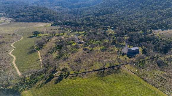 The property, which spans 23.77 acres and borders the expansive 3,800-acre Kenzo Estate, offers vineyard views, complete privacy, gentle terrain, and exceptional infrastructure. The two-story barn, covers 6,400 square feet, is constructed from high-quality steel and built by skilled craftsmen. The unfinished 4,400-square-foot home, designed by Marissa Periana, draws inspiration from the iconic concepts of Mies van der Rohe, showcasing the beauty of steel and glass architecture from the early 1950s. The updated plans feature a garage and adds 3,000 square feet to the home, increasing its footprint to 8,000 square feet. The design emphasizes transparency in the glass, creating a seamless connection with nature while providing climate control. Artist renderings related to completing the home have been provided in the video. An erosion permit is included for a 3.9-acre vineyard, and the current investment in infrastructure alone exceeds the asking price. The warm summer days in Wooden Valley are cooled by dramatic fog banks that pour over the palisades with mid-afternoon breezes, which can produce temperatures as much as 10 degrees lower than the Napa Valley resulting in a longer growing season. You can view plans @ https://app.disclosures.io/link/3576-Monticello-Road-24dfgvaf.
