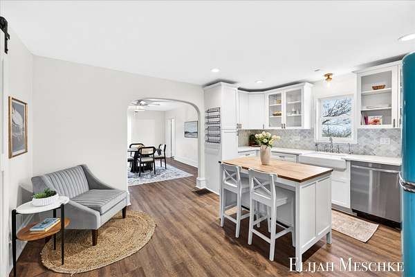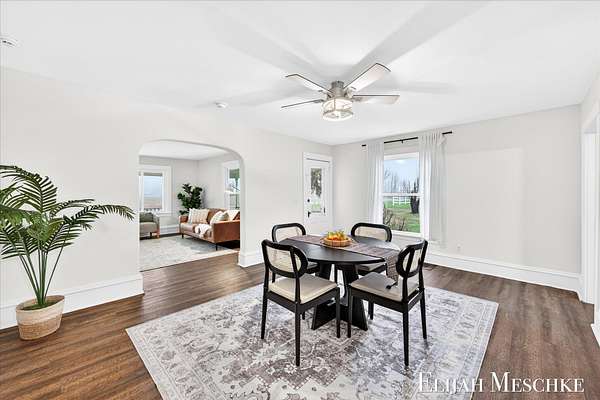 Welcome to your dream farmhouse retreat at 3578 Bennett Road in Ionia! This freshly remodeled 4-bedroom, 2-bath home sits on 1.71 acres, offering space, modern living, and a quiet location! Step inside to a spacious living room filled with natural light, creating a bright atmosphere perfect for entertaining guests or simply relaxing! From there, walk through stunning barn doors into the large, dedicated dining room. The bright white kitchen is a showstopper, featuring plenty of cabinet space, stainless steel appliances, a charming vintage-style refrigerator, a center island with seating, and a cozy breakfast nook! The main floor offers main-level living with a comfortable primary bedroom, an additional bedroom with built-ins, and a beautifully updated bathroom complete with a walk-in shower. You'll also love the mudroom with built-ins and a laundry area, which leads to a covered and enclosed porch that overlooks the backyard! Upstairs, you'll find a flex space ready to fit your lifestyle - whether it's a home office, workout room, playroom, or media space. Two additional bedrooms, a spacious full bathroom, and a second washer and dryer provide add convenience to the home! Outside, unwind on the stunning wraparound covered porch, complete with a swing - perfect for morning coffee or peaceful evenings overlooking the lush, open yard. The property also features a classic white picket fence and an oversized 2-stall garage conveniently located next to the home. This one-of-a-kind farmhouse offers the perfect blend of character, modern updates, and country living. Don't miss your opportunity to call it home! The seller is requesting a deadline for all offers to be presented on Wednesday, April 8 at 12:00pm.