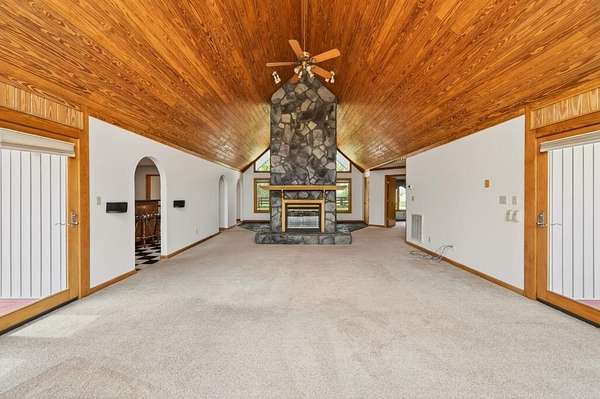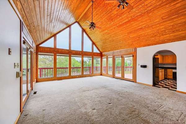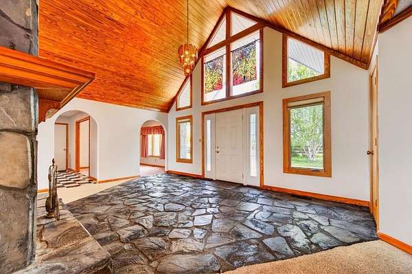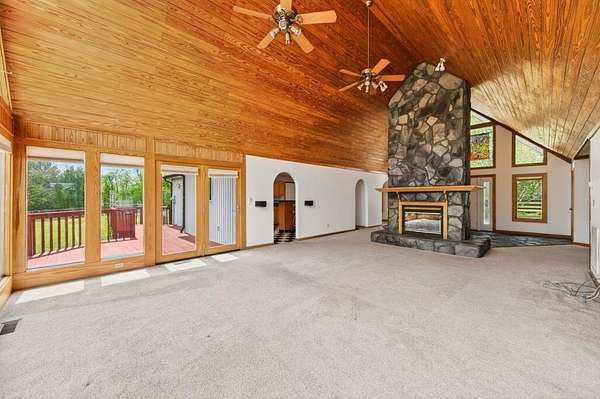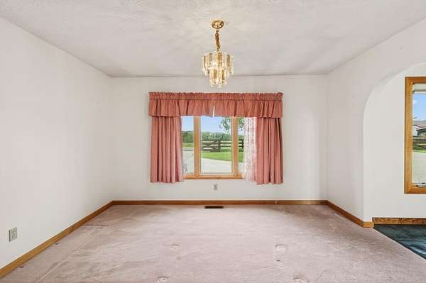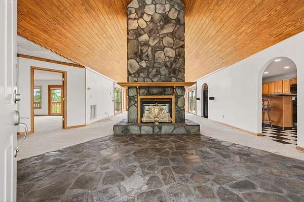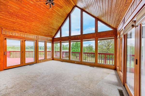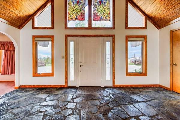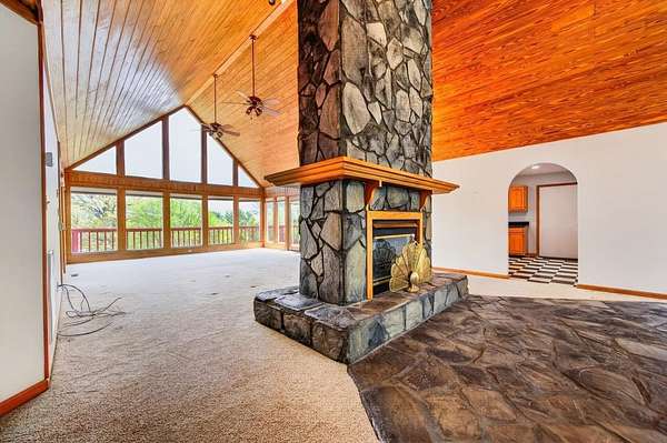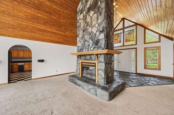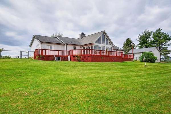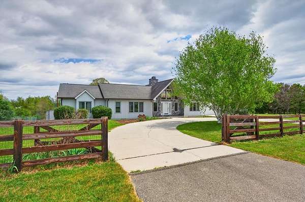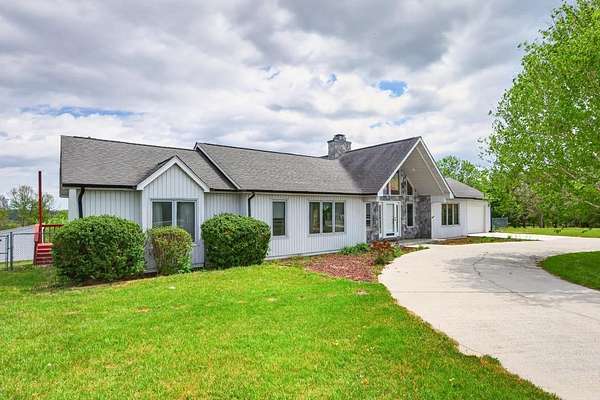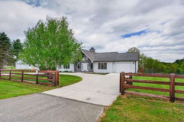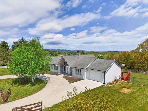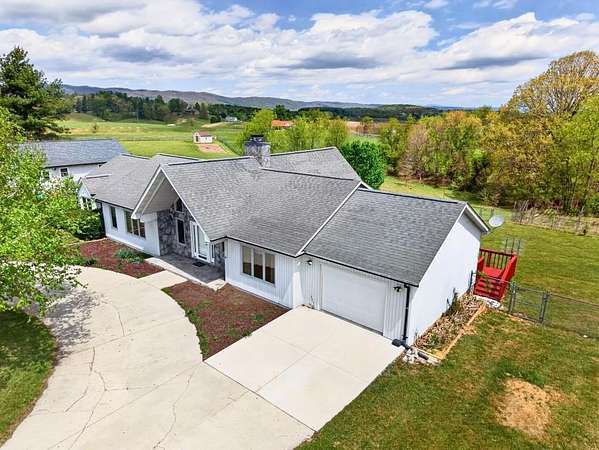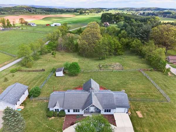 Tucked among rolling countryside and framed by breathtaking views, this charming one-level retreat offers the perfect blend of comfort, space and possibility. Set on 5 scenic acres with multiple fenced areas and mature trees, this is more than a home, it’s a lifestyle. Soaring vaulted ceilings and oversized windows framing incredible outdoor views in the spacious living room, while a striking double-sided gas-log fireplace serves as a cozy focal point. Kitchen features abundant cabinetry, a center island and easy connection to dining room ideal for everyday living and entertaining. Private main-level primary w/remodeled spa-like bath and walk-in closet. Detached garage/workshop plus attached garage provide exceptional versatility for storage, projects, or business. Peaceful country living, space to grow and a balance of comfort with future potential, this one doesn’t just check the boxes—it opens the door to the life you have been waiting for!