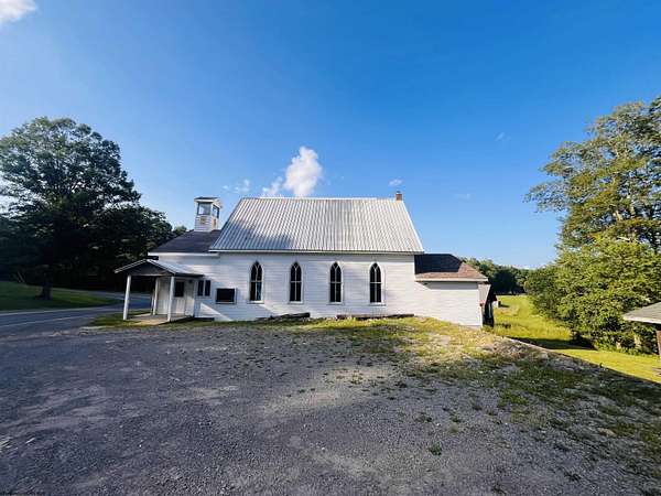 This beautifully preserved 2,900 sq ft Church in Cranesville offers a rich blend of character, functionality and opportunity. The sanctuary comfortably seats around 200 and features original stained-glass windows and a classic bell tower that adds timeless charm. With 2 classrooms and 4 restrooms combined between the fellowship hall and the sanctuary. The separate fellowship hall and pavilion space have endless opportunities. This property is well equipped for services, events or community functions. Ample onsite parking and scenic surroundings make it a perfect candidate for a wedding venue, retreat center or continued religious use. Not only do you get 2 beautiful structures, you have 3.61 acres for whatever your dreams may be. Built in the early 1900s these buildings combine history and potential and is ready for its next chapter!