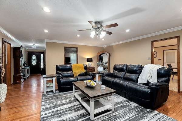 This beautiful brick home sits on nearly 4 peaceful acres just minutes from the heart of Cookeville. Thoughtfully maintained and lovingly cared for by its original owner, it offers timeless charm and a true sense of home. Inside, you'll find hardwood floors, a generously sized living area, and a spacious kitchen with abundant cabinet space and stainless steel appliances. The light-filled sunroom opens to a gorgeous stone patio--ideal for morning coffee or evening gatherings. A large front porch invites you to enjoy the quiet countryside, while both attached and detached garages provide flexible space for storage, hobbies, or workshop needs. Surrounded by nature but close to town, this home offers the best of both worlds in a serene, easy-to-love setting. Don't miss this one - schedule your showing today!