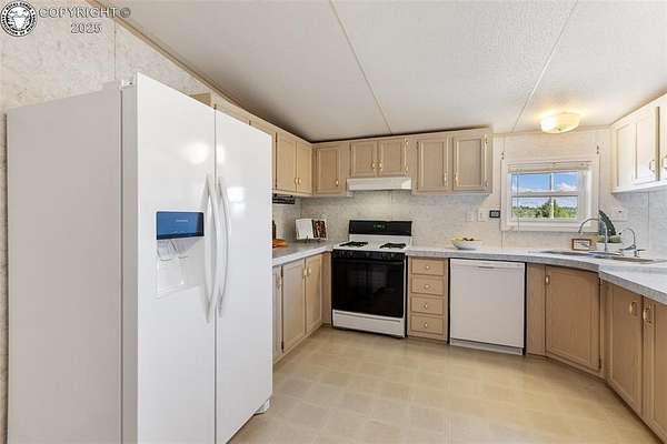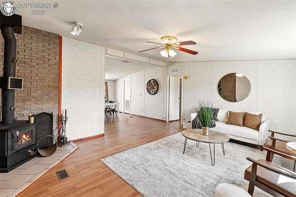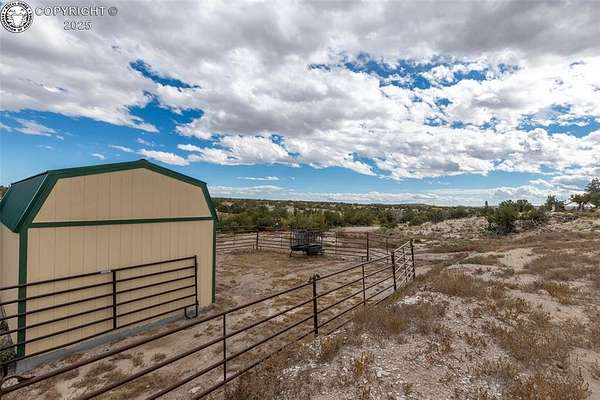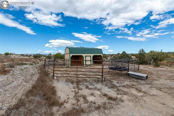 Experience Colorado country living at its finest with this spacious 4-bedroom, 2-bathroom home nestled on 10 serene acres with a year-round live stream in rural Penrose! Built in 2000 and offering 1,705 sq ft of single-level living, this property combines comfort, privacy, and functionality with everything you need for horses, livestock, or simply wide-open space to call your own. Step inside to a bright, open-concept layout with brand-new carpet in three of the four bedrooms, new vanities, sinks and flooring in both bathrooms, and a refreshed kitchen countertop. The inviting living room features a cozy freestanding wood-burning stove and large windows framing the incredible 360-degree mountain views-including majestic Pikes Peak. The kitchen includes all appliances, a breakfast bar, and a reverse-osmosis drinking water system connected to a high-end Crusader whole-house water filtration and water softener servicing the private well water. Enjoy a spacious primary suite with vaulted ceilings, a large walk-in closet, and a 5-piece en-suite bathroom featuring a soaking tub, dual vanities, and separate shower. Additional highlights include double-pane windows replaced in 2014, forced air propane heat, central A/C, and a convenient laundry room with washer and dryer included. Outside, you'll find everything you need for your hobby farm or equestrian lifestyle: with a fenced acre, corral and stables with a tack shed, and a live stream that flows year-round-perfect for watering animals. Peach and desert willow trees surround the home and are watered with a drip irrigation system, while the private gated driveway ensures peace and seclusion. Three additional adjoining 10-acre parcels are available for purchase if you'd like to expand your homestead. Agricultural and livestock history keep taxes low and options wide open-making this the perfect property for anyone seeking self-sufficient living, mountain views, and the freedom of the Colorado countryside.