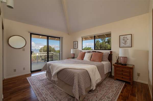 Enjoy an enchanting Upcountry Lifestyle in Kula Glen. This property has a four-bedroom, two-bathroom home, a detached two-car garage, and a detached two-bedroom, two-bathroom ohana. The main house has new acacia wood floors. The well-appointed kitchen has maple cabinets, quality appliances, and quartzite counters. The living room has vaulted ceilings and a fireplace. Extensive decks wrap around the home, creating quality outdoor spaces to enjoy the ocean and mountain views and Upcountry weather. The post and pier home has an enormous storage area underneath the house. The cottage features a fireplace and its own spacious lanai for enjoying the views. The gated and fenced two acres is extensively landscaped with a mix of edibles, native, tropical, and Mediterranean plants. The extensive orchard includes avocado, cherimoya, citrus, pears, papaya, fig, bananas, lilikoi, mango trees, and more. A meditation gazebo offers a tranquil spot to enjoy the park-like setting of the garden. Kula Glen is in the Goldilocks zone of Kula. Not too high an elevation and not too low, with convenient access to Upcountry Schools, Kula Ace, and less than 10 minutes to Pukalani Groceries and restaurants. Contact your favorite Realtor to set up a showing today.