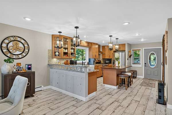 - Breakfast Bar, Eat-In Kitchen, Entrance Foyer, First Floor Bedroom, First Floor Full Bath, Granite Counters, High Ceilings, High Speed Internet, Kitchen Island, Open Floorplan, Open Kitchen, Pantry, Primary Bathroom, Sauna, Soaking Tub, Walk Through Kitchen, Washer/Dryer Hookup