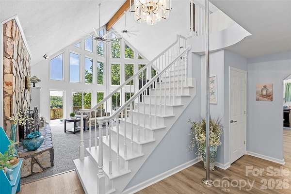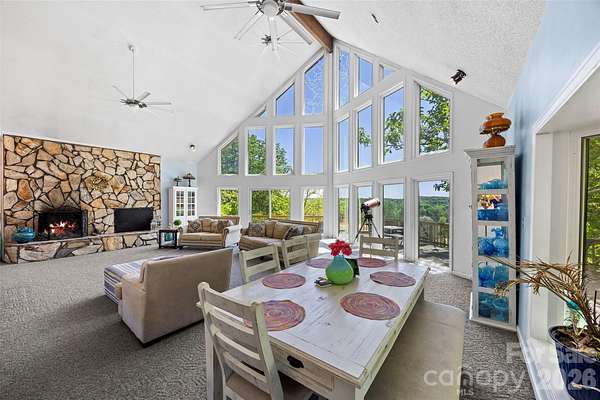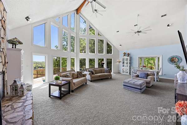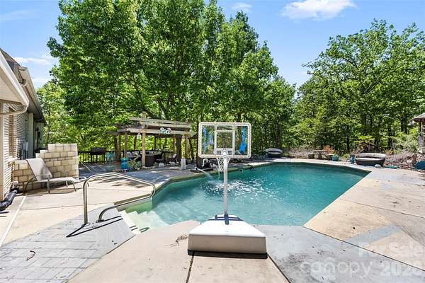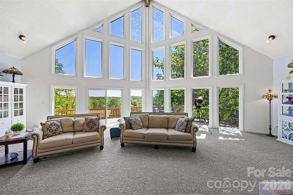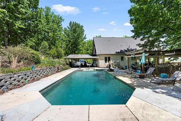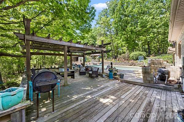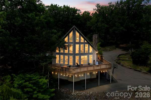 Absolutely stunning and one-of-a-kind property! This custom A frame home sits at the end of a cul-de-sac on 9 acres of land. NO HOA! The view from the wrap around deck and the main living area is unmatched. It feels like you are in the High Country but in Gaston County. Views of Spencer Mountain, Crowders Mountain, and the CLT skyline on a clear day. You will have a front row seat on 4th of July seeing multiple firework shows from your front porch. This home offers an in-ground pool, sheds, a greenhouse, pond, fruit trees, privacy and much more. The inside will have you in awe with the custom windows overlooking the view and the large wood burning fireplace. Basement is completely finished offering additional bedrooms and a full bathroom. 2 Secondary bedrooms on the main with 2 full baths. Upstairs offers a private ossias to the Primary Suite that also offers the view of the property. Primary suite has tall, vaulted ceilings, multiple closets. Large Primary bathroom with double vanity sinks, option for a jetted tub, and private tub/shower. Also has it's on hot water heater AND HVAC! Large carport supports 4 vehicles and the attach garage was built for your recreational vehicles/ workshop. Private winding driveway is beautiful and looks beautiful in every setting. This is a rarity!