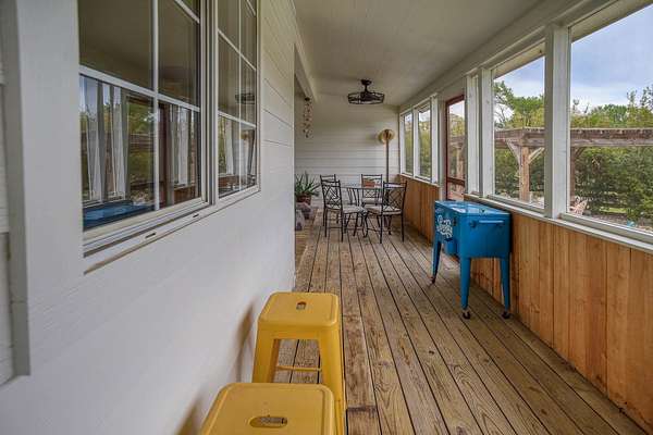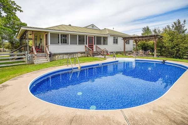 Rare Texas Country Lifestyle Property | ~6 Acres | Charming Country Home | Just 4 Miles South of Hwy 71 --- Rare opportunity to own a true country lifestyle property - the perfect blend of acreage, privacy, and charming farmhouse living, just 4 miles south of Hwy 71 in Bastrop. This 1,556 sq ft farmhouse (built in 1996) sits on approximately 6 beautifully treed acres, accessed via a private, fenced country driveway that sets the tone for the peaceful setting beyond. Beautiful windows fill the home with natural light and frame a stunning canopy of mature oaks, including stately post oaks that add true Texas character. Inside, every detail reflects farmhouse charm done right - warm wood and tile floors, a beautifully appointed kitchen, updated bathrooms, and a primary bedroom with a private sitting area that feels like a true retreat. Appliances updated since 2021; washer, dryer, and refrigerator convey. Foundation leveled February 2026 with transferable warranty. Furniture negotiable. Outdoors, enjoy an in-ground pool, meditation decks, wraparound and screened-in porches, and multiple sitting areas throughout the property. An irrigation system keeps the grounds lush, while the back acreage offers trails for biking or 4-wheeling. The land backs to a 420-acre ranch for exceptional privacy. The property includes a 30x40 engineered metal building with three bay garage doors, additional outbuildings, a greenhouse, and a well house. Farm equipment may be negotiated in the sale. Water well and septic provide full rural independence. Eco-friendly features include dual 1,000-gallon rainwater collection tanks fed by gutters and a variable-speed pool pump that keeps energy consumption low without sacrificing performance.