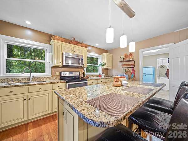 This is the one you've been waiting for! With spring in full bloom, your new home is ready to welcome you to a life of comfort and possibility. Nestled in desirable Cool Spring and set on more than three acres of land, this beautifully updated 3-bedroom, 3-bath home offers the perfect blend of character, space, and modern amenities. Step inside and experience the open, inviting atmosphere created during the 2014 remodel. The spacious kitchen now features custom cabinetry, gleaming granite countertops, and stainless steel appliances, making it a true centerpiece for gathering and entertaining. The kitchen flows seamlessly into a large dining area, perfect for hosting family and friends, while the front living room is already set up for relaxing game nights or cozy movie evenings by the fireplace. This home strikes a wonderful balance between modern updates and original charm. Unique architectural details abound, from walnut built-ins designed for buffet service to the original Dutch door connecting the kitchen and living room, and an elegant archway leading from the foyer into the living space. The primary bathroom on the main level is finished with a stylish tile shower and custom cabinetry with granite counters, a touch echoed in the second downstairs bath. Upstairs, the transformation completed in 2022 truly elevates the home. Indulge in the luxurious, spa-inspired bathroom with a deep soaker tub and exposed beams for a rustic yet refined feel. The upstairs window seat offers the best view in the house, overlooking your private backyard, while the spacious upstairs living room is ideal for entertaining guests or hosting weekend visitors. With over three acres, the possibilities are endless-imagine adding a large outbuilding, creating winding trails, or even subdividing to build or sell. The home is located in the sought-after Cool Spring Elementary district, offering peace of mind and a sense of community. Additional highlights include a fully encapsulated crawlspace (2025) with a one-year warranty and all modifications properly permitted by Iredell County. Don't miss the chance to experience this unique home-let's schedule your tour today! Listing agent is owner.