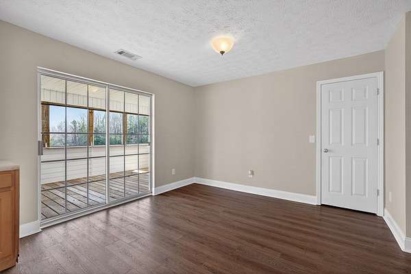 Beautiful Mountain Views! This SINGLE LEVEL 3 bedroom, 2 bath home with 2 car garage is on 3 acres of unrestricted land. The home offers a split bedroom plan with an open floor concept, plank flooring, NEW interior paint and covered porch overlooking your beautiful views. The home has gentle terrain and plenty of parking space. The open concept offers large area for gathering, dining and cooking. The kitchen has numerous cabinets and counter space. The dining area overlooks the nature that surrounds you. The master bedroom is spacious with its own en-suite bathroom. There are spacious closets and separate laundry room. The home is located 10 minutes from top orchards, wineries and cider houses. Downtown Ellijay is under 20 minutes away. This is a great primary, 2nd or investment home. Come see this great property!