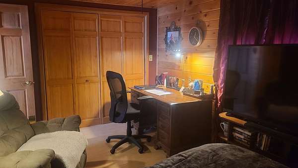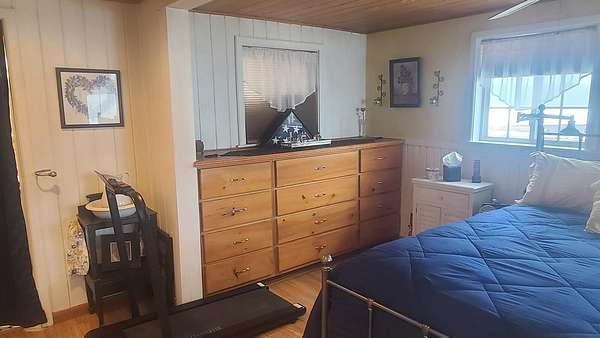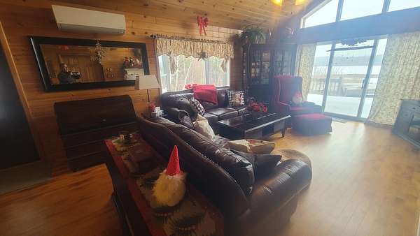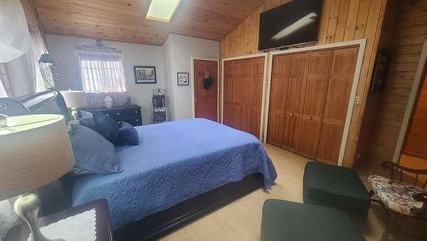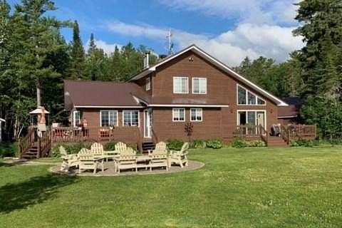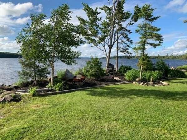 Est $3,271/moOnce in a Blue Moon listing!! This private, year round contemporary home features 4 acres, 5 large bedrooms, 3 full baths, a Great room with cathedral ceilings, custom tile & Hardwood floors, a large open flow kitchen & dining area, wrap around deck, gas fireplace, chrome trimmed wood cook stove, 230+ ft of superior shoreline, large lawn area. Over sized 42 x 36 ft, 3 bay garage, with 16 x 36 ft work shop & overhead storage. Out buildings include a 24 x 24 ft multi purpose storage building with wood fired sauna. Fantastic views, Loon calls and sunset await. You will be wowed!! Call for more details.