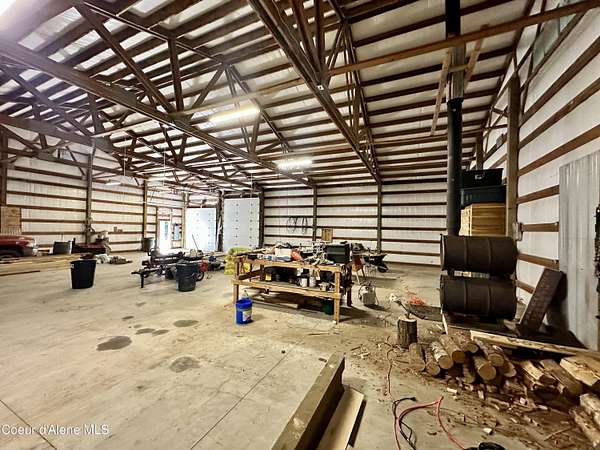 Experience the perfect blend of rural tranquility and functional living on this 2.3-acre property, featuring a massive 3,000 sq. ft. insulated shop designed for ultimate utility. The 4-bed 2-bath home provides 2,879sqft, and an open concept main floor anchored by a cozy Quadra-Fire wood stove. For effortless living, the main level hosts both the laundry room and a master suite complete with a walk-in closet. Downstairs, the basement serves as a blank canvas for instant equity, already plumbed for a bathroom and simply waiting your choice of flooring. Technical peace of mind comes standard with a radon mitigation system and an HVAC system already fitted with coils for easy A/C integration. Outside, your homesteading dreams await with a dedicated garden area with partial below ground green house, blueberry, raspberry, strawberry and huckleberry bushes, chicken coop, and a spacious covered patio area overlooking the yard. This property offers an unparalleled lifestyle in a prime location