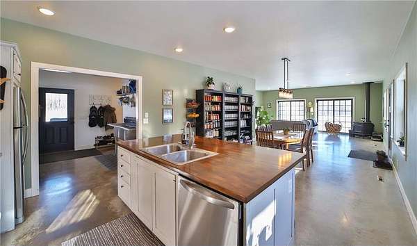 Don't miss this recently built Esser Construction home that has four bedroom, two baths on 40 wooded acres. Home has main floor living and features an open floor plan, custom cabinets, tiled back splash in the kitchen, second kitchen, walk-in closets, concrete patio, a detached two car garage with lean-to, central air, free standing wood stove, a ton of detail, storm shelter in the basement and so much more. Set up a showing today.
