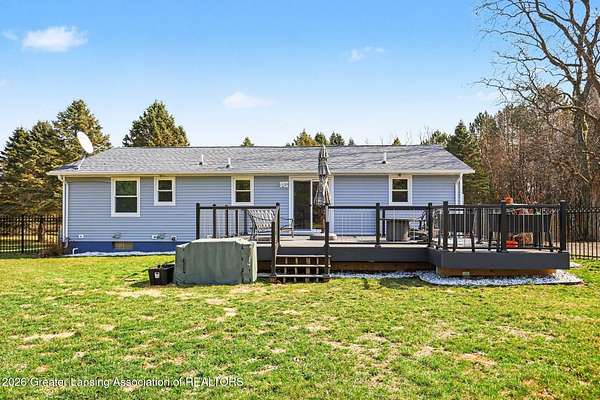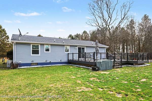 Welcome home to your own serene paradise! This beautifully renovated 3-bedroom, 2 full-bath home sits on 10 picturesque acres and features a stocked pond, offering peaceful country living at its finest. The home has been meticulously maintained and features a bright, open floor plan with spacious living and dining areas that flow perfectly for everyday living and entertaining. The updated kitchen boasts newer cabinets, countertops, and appliances. Fresh paint and new flooring throughout give the home a clean, modern feel. Both bathrooms have been completely remodeled with stylish finishes. The full basement is open and ready for your finishing touches, offering plenty of potential for additional living space. Step outside from the kitchen onto a beautiful deck overlooking the property and enjoy the new $25,000 wrought iron fenced yard-perfect for pets or relaxing outdoors. The pole barn provides ample storage for equipment, vehicles, or recreational toys. Be sure to take a walk out to the large stocked pond, home to beautiful goldfish and koi-an ideal spot to unwind and enjoy the natural surroundings. Don't miss your chance to own this peaceful and beautifully updated property!