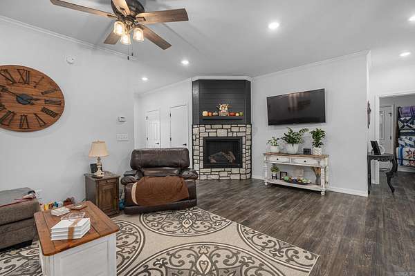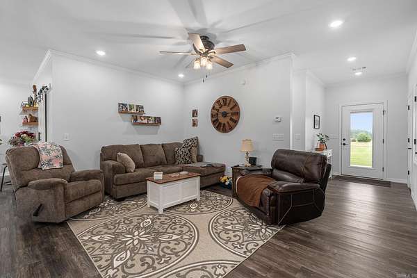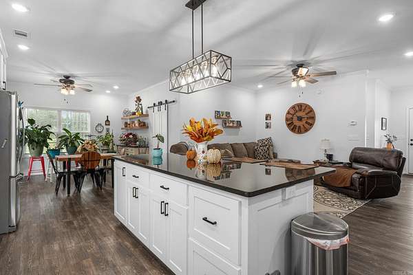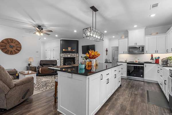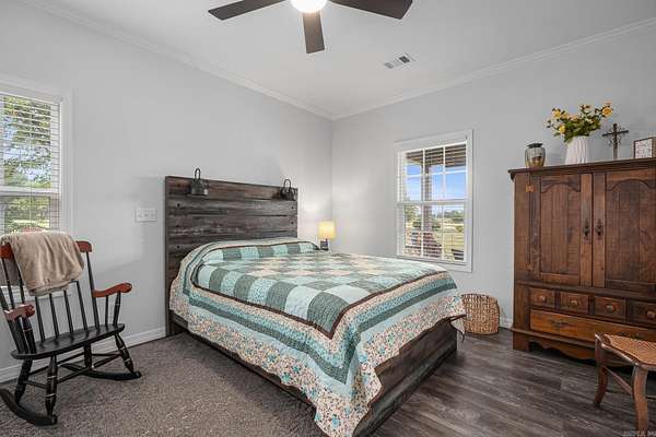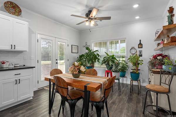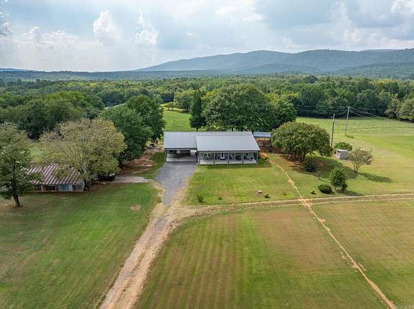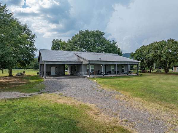 This gorgeous newly constructed home built in 2023 features metal and rock exterior for zero maintenance. The spacious open split floor plan with custom kitchen featuring soft close cabinetry, granite countertops, built in spice cabinets, large drawers w/slide outs and a lift mixer stand- every woman's dream kitchen! Both baths feature custom marble showers and custom vanities. Luxury wood look vinyl makes for easy cleanup inside as well. The master suite features easy access to the two car carport and 10x20 storage room with an abundance of shelving. The 25x35 shop building is not yet on a permanent foundation so could easily be moved to a desired location on site. The large garden spot sports established asparagus, and the water well is a short distance away for watering. The home is serviced with James Fork rural water and a septic system, CH/A & propane fireplace. You will enjoy watching the gorgeous sunrise off the spacious 12x45 front porch as it rises over the beautiful Ouachita Mtns. Located in the Dutch Creek Valley surrounded by mountains and in close proximity to the National Forest and friendly neighbors make this the perfect choice! Book your appointment today!