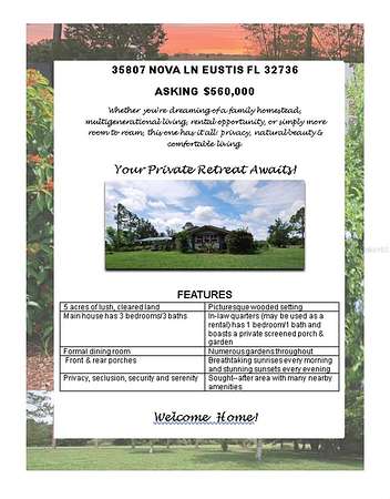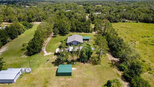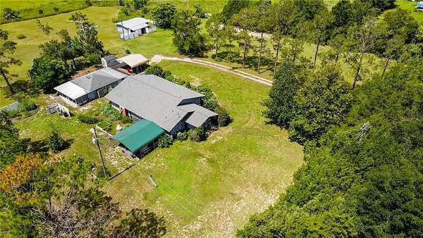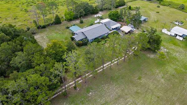 PRICE CORRECTION! DON'T MISS THIS OPPORTUNITY! Your Private Retreat Awaits! Two homes for the price of one on a picturesque, high and dry 5 acre property where you are completely secluded from neighbors. It truly is a private retreat with the perfect blend of natural beauty and comfortable living. The main home features 4 bedrooms, 2 full bathrooms, offering lots of space for your family. To give you peace of mind, the roof was installed in 2024, a new water heater in 2025, the HVAC system is within 10 years old, as well as new floors in the main house and both houses were painted in the last 5 years. The main home also has covered porches on the front and back to offer a wonderful place to watch both sunrises and sunsets on your own private oasis. One bedroom has it's own private entrance, great for young adults living at home or multi-generational living, and this home offers a separate laundry room with a laundry sink. But that's not all! In the guest house your will find a full kitchen, nice sized bedroom, full bathroom, laundry closet, and a front porch and back screened porch to once again enjoy the beauty of the property as well as the oppurtunity to watch gorgeous Florida sunrises and sunsets. This home provides a flexible space for guests, extended family, or excellent income as a rental. This property also offers a large shed for the storage of your boat or UTVs and a fully functional workshop with its own electric meter. This property is horse friendly, so you could add stalls back to the shop. You'll enjoy the quiet seclusion of the countryside with the convenience of nearby amenities.