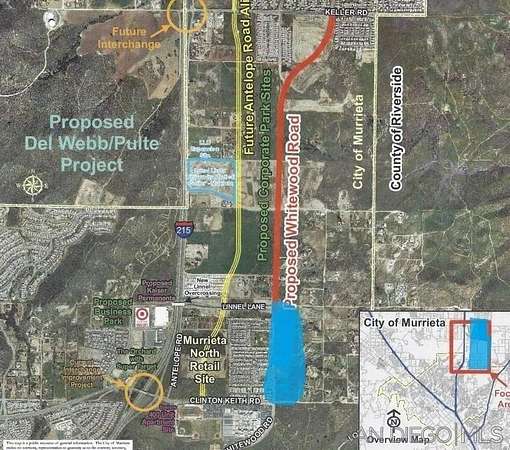 Desirable 5 acre property within the 600 plus acre North Murrieta Technology Corridor, zoned Office Research Park(see attached Document for allowable uses). Minutes from anchors Loma Linda University Hospital & Kaiser Permanente Medical Center. Parkway frontage on Whitewood Road between Clinton Keith & Lee Road, this rapidly developing area is surrounded by new housing, schools, restaurants, stores & theaters. The Office & Research Park zoning also permit hotels & assisted living/congregate care facilities up to 5 stories in height. You can view more information, pictures and maps listing ID # 13181686