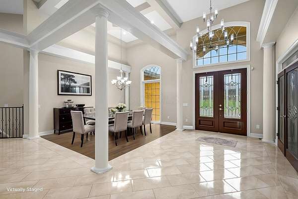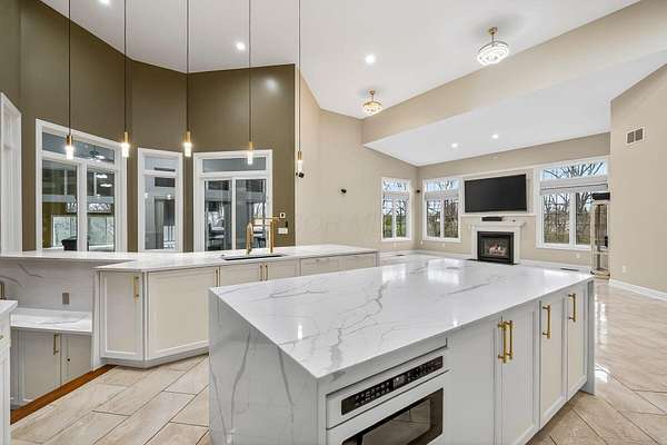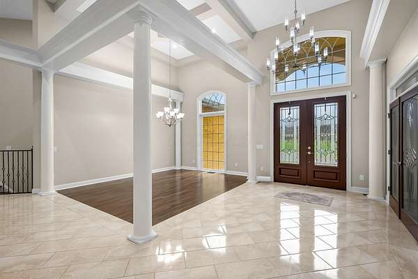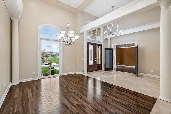 This captivating estate in Hilliard Schools that feels like your own private countryside retreat starts with a gated entry to the deep 5-acre lot! Soaring ceilings with custom details frame an elegant entry that opens to a formal dining space and a home office. The expansive floor plan features a gourmet kitchen boasting high-end appliances, custom cabinetry, dual islands that are great for hosting, 6 bedrooms, 6 bathrooms, and a first-floor laundry. Extensive renovations make this lavish estate one-of-a-kind! The lower level offers a recreation room, wet bar, three of the 6 bedrooms, two bathrooms, and a second laundry space. Multiple entertainment spaces include an indoor saltwater pool, nearly 1200 square feet of deck space that has an industrial kitchen and a hot tub with an automatic remote-controlled cover. Outdoor spaces include a horse barn with a tack room, 3 stalls, turnout area, and outdoor carousel. Inside the climate-controlled portion, there are entertainment or additional garage spaces and a half bath. Offering timeless elegance, modern comforts, and extraordinary grounds, this rare estate sets the standard for luxury living in Central Ohio.