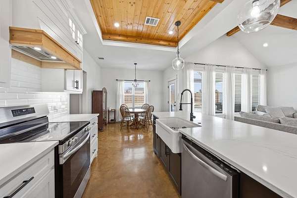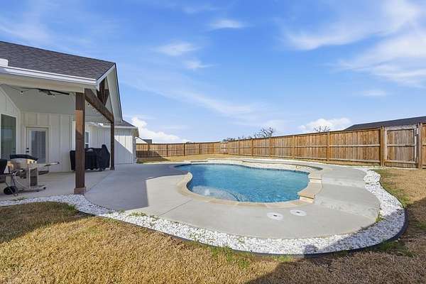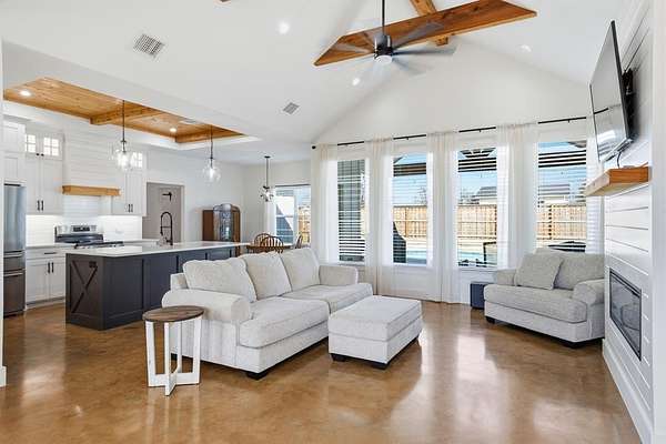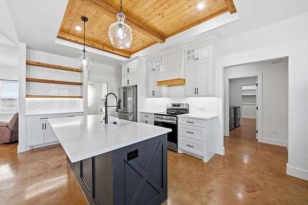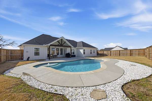 STUNNING 2024 CONSTRUCTION THAT FEELS BRAND NEW AND OFFERS THE PERFECT BLEND OF STYLE, C0MFORT, AND FUNCTIONALITY. THE OPEN-CONCEPT DESIGN WITH A DESIRABLE SPLIT-BEDROOM ARRANGEMENT CREATES AN IDEAL LAYOUT FOR EVERYDAY LIVING AND ENTERTAINING. THE SPACIOUS LIVING AREA FEATURES VAULTED CEILINGS WITH EXPOSED TRUSSES, A COZY FIREPLACE, EXPANSIVE WINDOWS FOR ABUNDANT NATURAL LIGHT, AND SCORED CONCRETE FLOORS THAT FLOW SEAMLESSLY THROUGHOUT THE HOME. THE KITCHEN IS BOTH BEAUTIFUL AND HIGHLY FUNCTIONAL, SHOWCASING GRANITE COUNTERTOPS, A LARGE ISLAND WITH AMPLE PREP SPACE AND GATHERING AREA, A STRIKING WOOD CEILING TREATMENT, AND AN EXCEPTIONAL BUTLER'S PANTRY THAT PROVIDES ADDITIONAL STORAGE AND PREP SPACE. THE PRIVATE PRIMARY SUITE BOASTS RAISED CEILINGS AND A LUXURIOUS BATH COMPLETE WITH DUAL VANITIES, A LARGE WALK-IN SHOWER, AND A RELAXING SOAKING TUB. TWO GUEST BEDROOMS AND A WELL-APPOINTED GUEST BATH PROVIDE COMFORTABLE ACCOMMODATIONS FOR FAMILY OR VISITORS. ENJOY WONDERFUL FRONT AND BACK PORCHES, WITH THE OVERSIZED BACK PORCH OVERLOOKING A BEAUTIFUL FENCED POOL -PERFECT FOR RELAXING OR ENTERTAINING . A 20 X 20 SHOP OFFERS IDEAL SPACE FOR HOBBIES, PROJECTS, OR EXTRA STORAGE. ALL OF THIS IS SITUATED ON A SPACIOUS 2 ACRE TRACT, PROVIDING BOTH ROOM TO ROAM AND PRIVACY YOU'VE BEEN LOOKING FOR.
