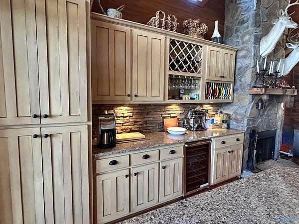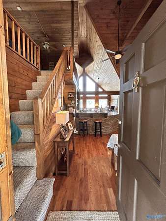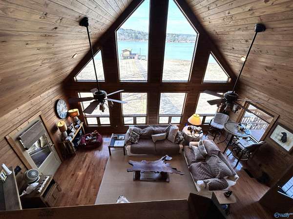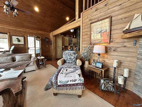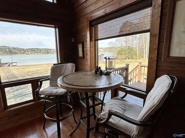 Experience stunning waterfront views on Weiss Lake in Cedar Bluff! This 4BR/3BA log home showcases vaulted ceilings, beautiful hardwood walls, a gas fireplace in the living room, & a wood-burning fireplace in the kitchen featuring a gas stove, wine cooler, & granite countertops. Spacious loft bedroom w/ private bath, plus a main-level master suite opening to a bright sunroom. 2-car garage w/ upstairs bonus bed & bath. Screened deck, boat dock w/ boat lift & jet ski lift, & a dedicated dedicated sink w/ water for cleaning fish or rinsing off the deck & boat after a day on the lake. From the incredible views to the thoughtful amenities, this exceptional Weiss Lake property truly has it all.