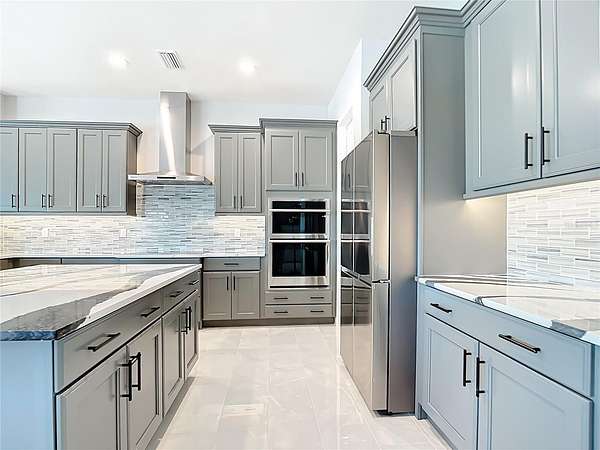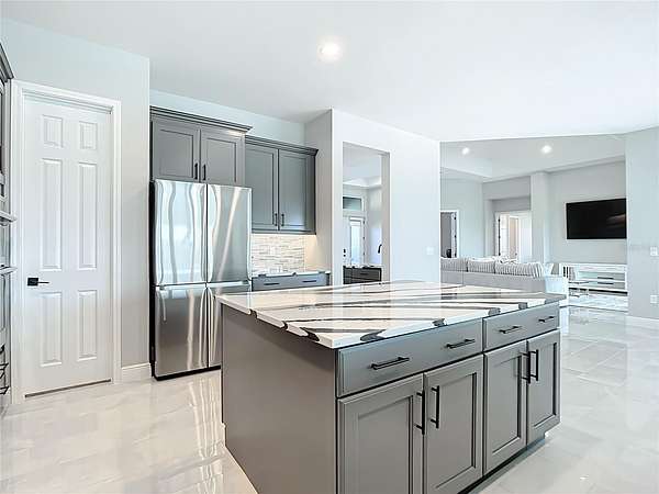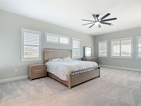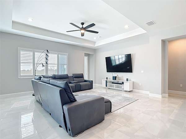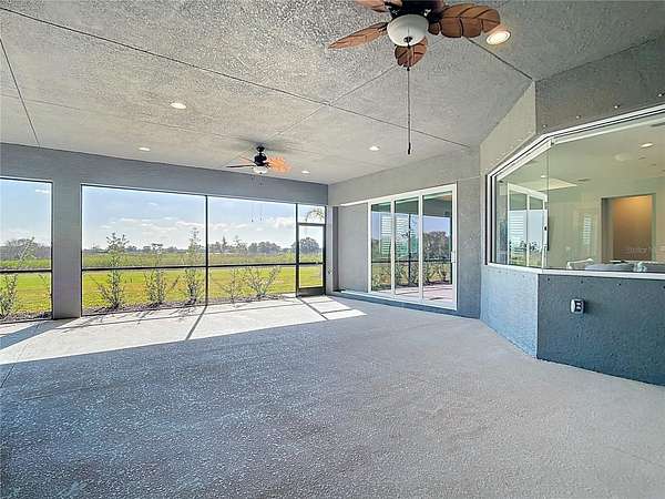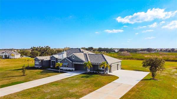 If you're looking for a home that combines modern luxury in an away-from-it-all setting with easy access to wonderful Sarasota, 3586 Recurve Circle is the property for you. This nearly new 5 bedroom, 4 bathroom Grand Cayman estate is situated on an expansive, private 8 acre lot in the gated Hampton Lakes community with no rear neighbors and a serene conservation view. Built with an extended lanai and graced with an additional bonus room/5th bedroom, this home is perfectly designed for indoor-outdoor living. Whether you're looking for a spacious property to connect with family and friends or just want room to breathe, this property checks these boxes and more. Soaring ceilings greet you at the front door with an easy flowing floor plan that leads you past the den, living room, dining room, and butler pantry to your beautiful kitchen with impressive quartz countertops and on to the bright, inviting family room. The capacious primary suite encompasses the entire east side of the home and includes a generous 15x18 walk-in closet, soaker tub, and walk-in shower with waterfall showerhead. On the western side of the home are 3 more bedrooms with full ensuite bathrooms and a bonus room with a large closet that can be used however you see fit. The home has thoughtful options above the base model including an additional bedroom, double driveway, and generous screened and covered outdoor space perfect for entertaining or taking in the peaceful view. Your cavernous garage (1,325 sq ft) has room for four vehicles and more. Situated away from it all but close to everything - just minutes from Lakewood Ranch and Waterside Place. Come embrace all this estate home has to offer and imagine yourself in this unique opportunity.