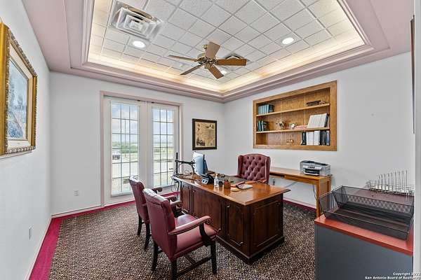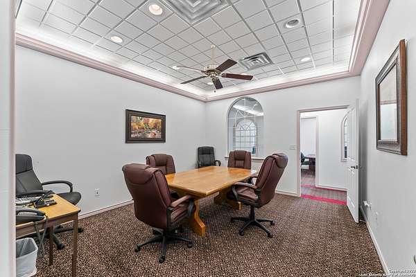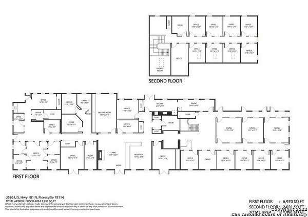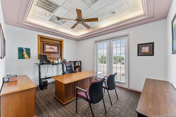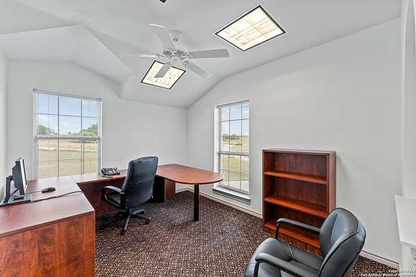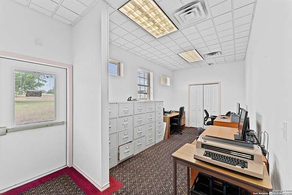 LOCATION...LOCATION...LOCATION! Featuring 731 feet of HWY 181 frontage, this two-story quality commercial building on a 5+ acres lot of Prime location is just outside Floresville city limits. The options are unlimited, with the amount of space and amenities offered. The first floor features 17 offices, 2 Open offices, 4 Executive Offices, 1 Data Room, 2 Break rooms, 5 conference rooms and 1 reception station with a sitting/waiting area. There are also 5 baths, 2 storage units and 2 Break Rooms on the first floor. The Second floor features 1 open office, 10 offices and 1 bath. There is an alarm system, exterior lighting, security lighting and whole building fire sprinkler system. The property is xeriscaped and has a landscaping sprinkler system installed for ease of maintenance. The paved parking area has 50+ parking spaces. Come see what this great property can offer for your business!