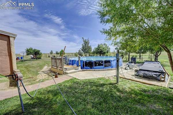 Bring your animals, toys, and vision-this 67.82-acre, fully fenced, horse-ready ranch in Yoder is your country dream come true! Set in Colorado's rolling prairie under wide open skies, this move-in ready 3-bed, 2-bath, 1,344 sq ft ranch-style home offers the perfect blend of comfort, usability, and rural charm. Inside, enjoy vaulted beamed ceilings, an open floor plan, and a spacious eat-in kitchen with island, pantry, and ample cabinet space. A cozy wood-burning stove adds warmth and rustic appeal, while the primary suite delivers a 5-piece bath, walk-in closet, and serene views of your land. Step outside to a turnkey setup ideal for agriculture, recreation, or self-sufficiency: * - Detached 6-car heated garage/workshop with 220V electric, built-in bar, and ample space for tools, toys, or a home business * - Framed barn, loafing shed, and multiple outbuildings for animals or storage * - Above-ground pool shaded by mature trees-perfect for summer evenings * - Five water hydrants positioned across the property for efficient livestock watering * - Round pen, fencing, and cross-fencing for horses, goats, or cattle * - Plenty of room for gardening, arenas, greenhouses, or future outbuildings Additional features include a domestic well (permit #221583), septic, propane, and electric all in place-move in and start living. Zoned A-35 with no HOA, no covenants, and low property taxes, this property offers total flexibility and freedom. Located in Edison School District with easy access to Hwy 94, you're under 40 minutes to Colorado Springs, yet surrounded by space, quiet, and possibility. Whether you're looking to homestead, raise livestock, or enjoy your own ranch retreat, this rare offering delivers. Schedule your private showing today-properties like this don't come around often!