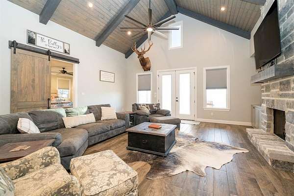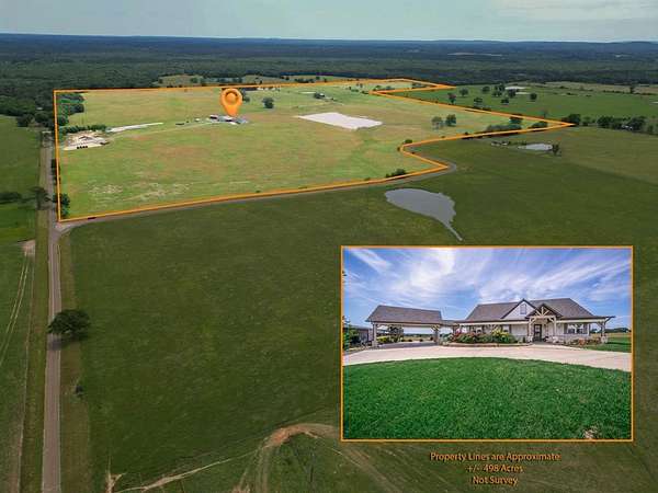 Welcome to this extraordinary 498.27 acre working cattle ranch nestled in the rolling hills of Troup, Texas. This rare East Texas gem offers unparalleled beauty, functionality, & recreation with breathtaking hilltop views, lush hay pastures, & multiple ponds. At the heart of the property sits a custom-built 2023 home featuring 2,475sf of thoughtfully designed living space. With 3 bedrooms, 2.5 bathrooms, an office,& an open-concept layout, this home is perfect for both everyday living & entertaining. The chef's kitchen includes a large island that flows seamlessly into the living & dining areas, highlighted by a cozy fireplace & expansive windows overlooking the serene pond.The private master suite feels like a retreat with double vanities, a soaking tub, oversized walk-in shower, & walk-in closet. Step outside & enjoy the custom gunite pool & hot tub, perfect for relaxing or hosting guests. Nearby, the 40'x60' workshop is fully insulated with heating & AC, washer dryer hookups, a water heater, and a 20'x20' bar area with a half bath. Ideal for entertaining or winding down after a day on the ranch! This turn-key operation is ready for livestock with cross-fenced pastures, two brand-new feed lots (2 acres & 3.5 acres), a 60'x70' horse barn with tack room,& working pens built to handle up to 100 head of cattle. Additional structures include a spacious equipment barn. Recreational opportunities abound! Enjoy five ponds, 85 acres of bottomland ideal for duck hunting,& plentiful deer & wildlife with established blinds & feeders. With mature trees & scenic trails throughout, it's a haven for outdoor lovers & equestrian enthusiasts alike. In 2024 alone, the ranch produced an impressive 512 rolls of hay & 197 rolls of sileage. Whether you're seeking a full-time ranching operation, recreational getaway, or luxury country estate, his property offers it all. Schedule your private tour today to experience this East Texas masterpiece firsthand!