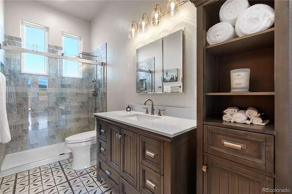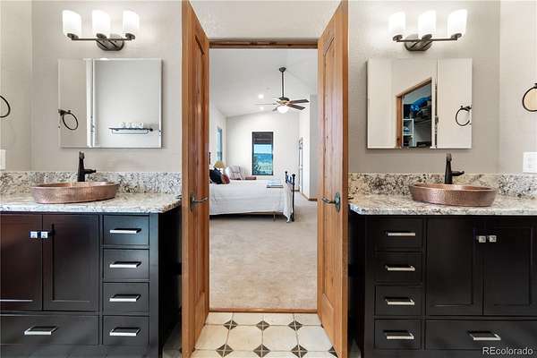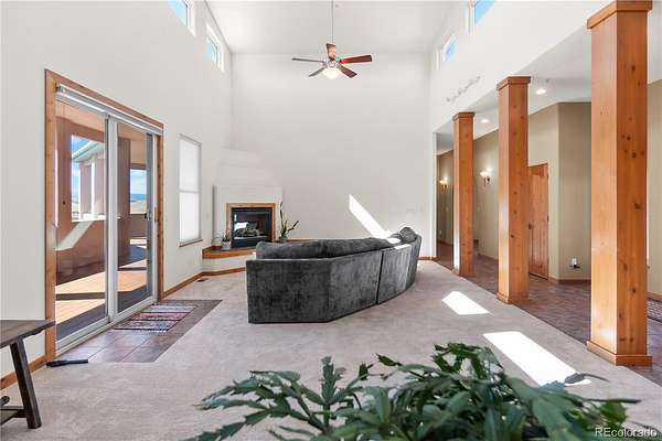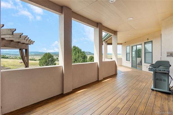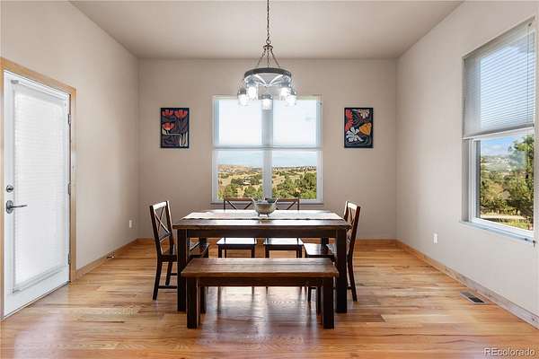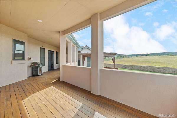 Experience a unique custom ranch home in the highly desirable Bell Mountain Ranch community, situated on over 2.5 acres. This spacious residence encompasses 4,067 square feet and features a thoughtfully designed layout, including four bedrooms and three and a half bathrooms, offering both versatility and comfort. The living room is enhanced by vaulted ceilings and abundant natural light, while the kitchen and family room create an impressive open-concept space, ideal for entertaining and showcasing stunning mountain views. Three main floor bedrooms, including the primary bedroom, provide generous space and plenty of natural sunlight. The primary bedroom on the main floor boasts an ample layout along with a beautiful en-suite bathroom. The basement offers additional living or entertaining space, complete with a bedroom, a bathroom, and ample storage. This home also features a massive covered deck, perfect for entertaining or simply relaxing while enjoying the views, with convenient walk-out access to a patio from the main level. The three-car oversized garage provides plenty of storage space, and there is also side parking available! This southwestern-style custom home boasts remarkable living spaces and is set on a picturesque lot in Castle Rock. It invites you to experience the serene beauty of Colorado living, just minutes away from shopping and dining, with easy access to I-25 for convenient commuting. The generous square footage and distinctive floor plan make this property an exceptional opportunity for buyers seeking character, functionality, and room to grow. *Please see supplement documents *