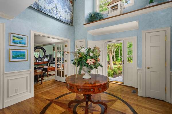 Welcome to an exquisite 2 acre waterfront estate, complete with panoramic water views, deep water dock and an in-ground gunite pool in the serene setting of Baxter Neck Road. This remarkable residence spans 9000 SF, artfully combining elegance with a relaxed casual charm promising both privacy and grandeur. Upon entering, you are greeted by an expansive layout that effortlessly flows from one room to the next. With 5+ generously sized bedrooms and 8 luxurious baths, there's ample space for comfort and relaxation. Each room is thoughtfully designed, ensuring a perfect balance of sophistication & comfort. The living areas are adorned with fine finishes, showcasing an understated elegance that invites both intimate gatherings & large scale entertaining. The kitchen, a culinary artist's delight, provides a beautiful backdrop for both everyday meals & formal dining. Outside, the landscaped grounds offer a tranquil oasis, featuring a bright open pool house/cabana. The property's grandeur is matched only by its warmth, making it a perfect sanctuary for those seeking a harmonious blend of style & comfort. Ideal for those who value privacy & luxury, it's more than a home; it's a lifestyle.