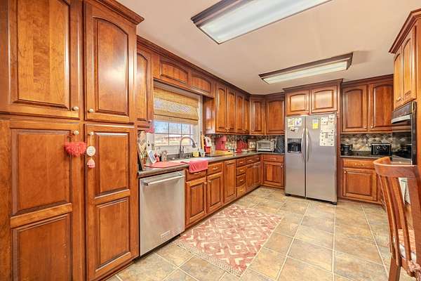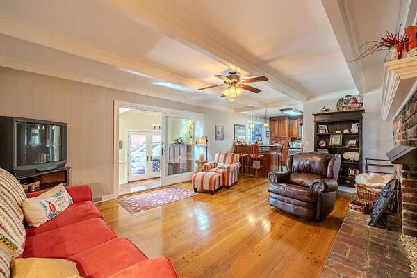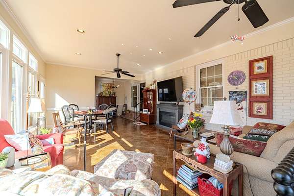 Welcome to this stunning, one-level brick home nestled on a sprawling 4.91-acre estate. This property offers a perfect blend of elegance & comfort, boasting five bedrooms and 3.5 bathrooms. The detached three-car garage & carport provide ample parking. Enjoy the fiberglass inground pool, perfect for relaxation & entertainment. Inside, you'll find a separate living room & den, each featuring a cozy fireplace. The kitchen is equipped w/ granite countertops & stainless steel appliances. Beautiful hardwood floors flow throughout the main house, which includes four bedrooms & 2.5 bathrooms. A large sunroom floods the space w/ natural light, offering serene views of the patio & pool area. Attached to the home is a two-car carport & a guest suite with a living room, bedroom, & full bath. The guest suite opens to a covered porch and patio overlooking the pool. At the rear of the property, you'll find a barn for more covered storage. Located just minutes from all the amenities of Savannah Tn!