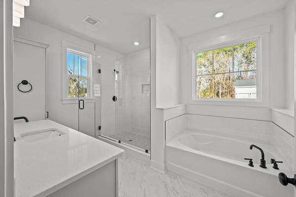 Under Construction--Ready Spring 2026.A quick 15 minute drive to Summerville, 5 minutes to Volvo, and I-26. Welcome to the Claire, an open-concept Craftsman home with a spacious front porch and vaulted, beam-accented Great Room with gas fireplace. The layout flows into a generous kitchen with an oversized quartz island and a dining area overlooking the backyard. Enjoy an oversized covered porch for year-round outdoor living. The split plan offers a luxurious primary suite with tray ceiling, freestanding tub, tiled shower, and dual vanities, plus a walk-in closet connected to the laundry and mudroom. Two secondary bedrooms share a full bath, with a flex room for an office or den. Upstairs, a 480+ sq. ft. bonus with full bath is perfect for guests.
