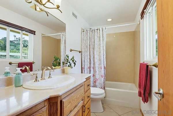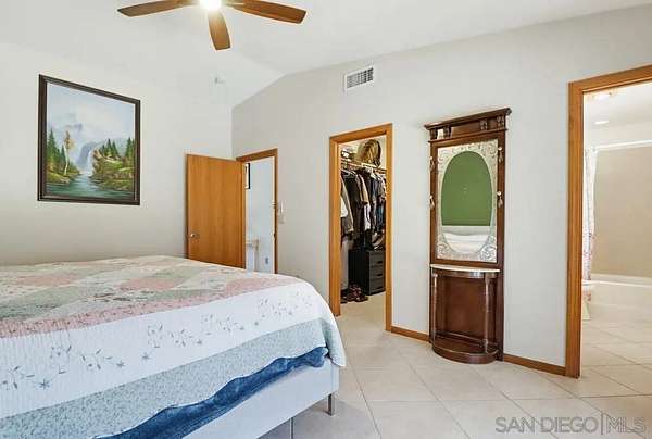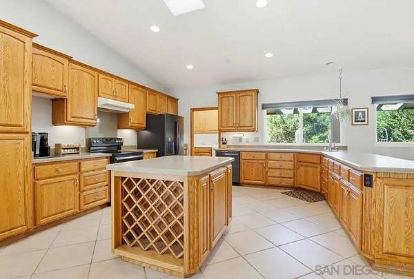 Beautiful single level home with amazing views! Features include a spacious open kitchen with newer appliances, tile flooring, natural light, vaulted ceilings, vinyl windows, ceiling fans throughout, abundant storage, laundry room with sink & cabinets and skylights in the living room, dining room and kitchen. The spacious layout offers a large master bedroom with vaulted ceilings, a walk-in closet, and French doors that open to the stunning backyard. The family room showcases a charming bay window with French doors that lead outside, and a wood burning stove while the living room has a cozy fireplace. Enjoy breathtaking views from both the front and back yards. A natural creek bed borders both sides of the property, creating a serene setting with a peaceful waterfall-like ambiance. The expansive backyard is perfect for entertaining or relaxing, offering privacy, space, and natural beauty, along with coyote rollers installed on the fencing. Additional highlights include paid solar, fully gated yard, an RV pad with hookups, a 48x12 outbuilding/barn with water and electricity, ideal as a workshop, she-shed, or man cave, plus a 10x10 storage shed with power and water. Conveniently located near central Alpine, schools, restaurants, shopping, and freeway access, this property offers country living without sacrificing everyday convenience.