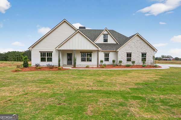 LOCATION - LOCATION - LOCATION - Fall in LOVE with this lovely modified RANCH home with 4 Bedrooms and 3 Full Bathrooms (including the Owner's Suite) on the MAIN LEVEL and 1 bedroom and 1 full bathroom upstairs! You will absolutely love living on this lovely 5 acre Tract in a desirable area of North Heard County with outstanding schools and a country setting. Upgraded finishes throughout will blow you away, from the Wood Floors, Vaulted Beamed Ceiling in the Owner's Suite to the kitchen cabinets and countertops. Stone and Hardi exterior is on point and there's also a covered back patio to take in the pasture scenery. SMART HOME TECHNOLOGY PKG - Zoned HVAC - High Efficiency Windows and Spray Foam Insulation, plus a 1-2-10 Warranty will put you at ease. Don't let this gem get away!
