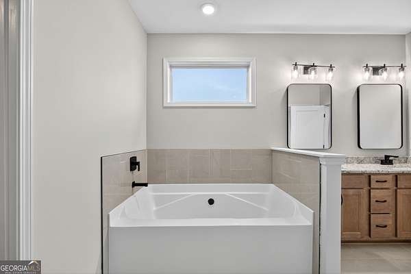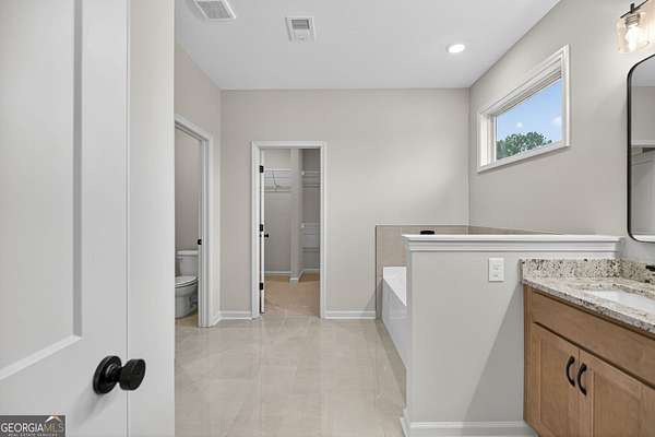 - Double Vanity, High Ceilings, Master On Main Level, Separate Shower, Soaking Tub, Split Bedroom Plan, Tile Bath, Walk-In Closet(s)